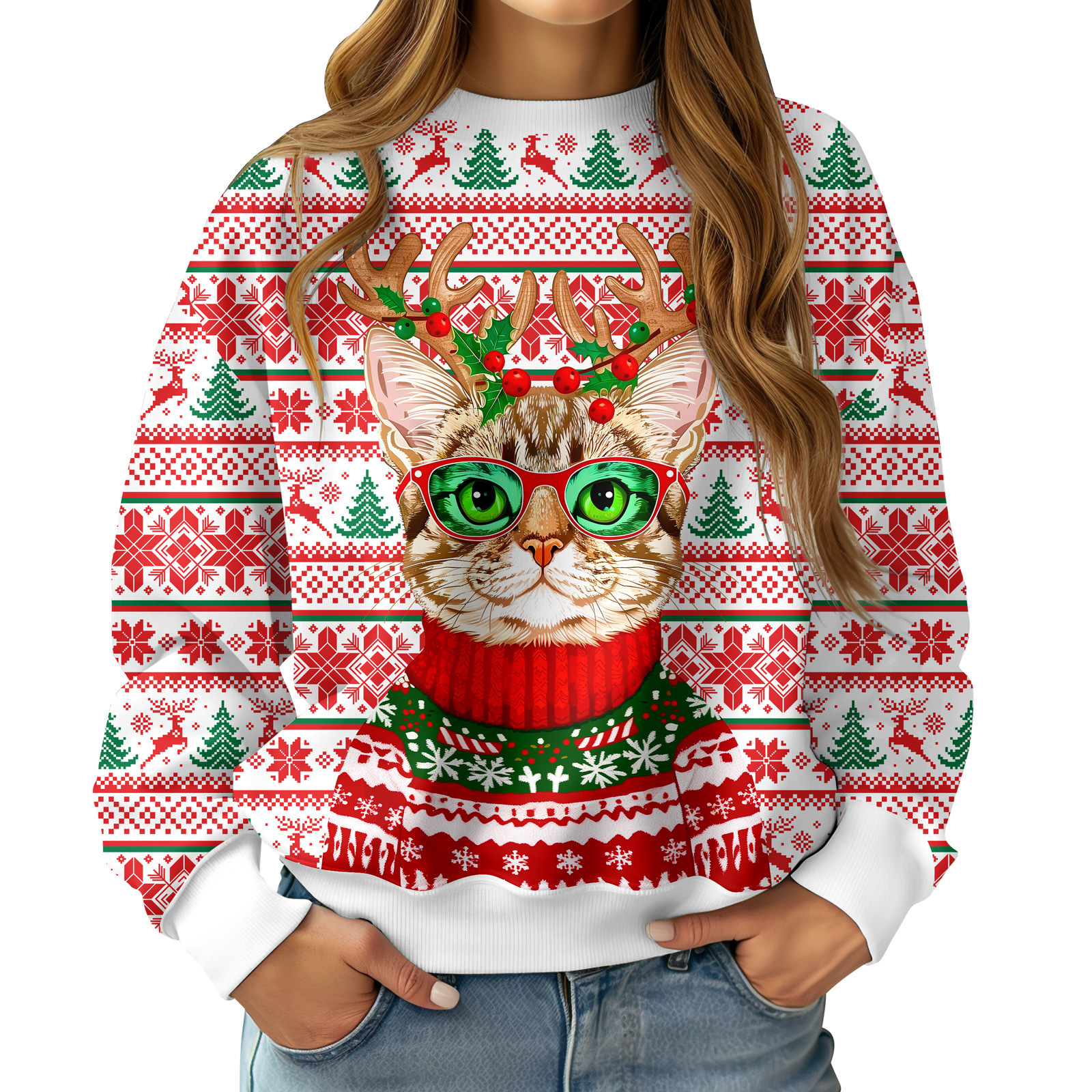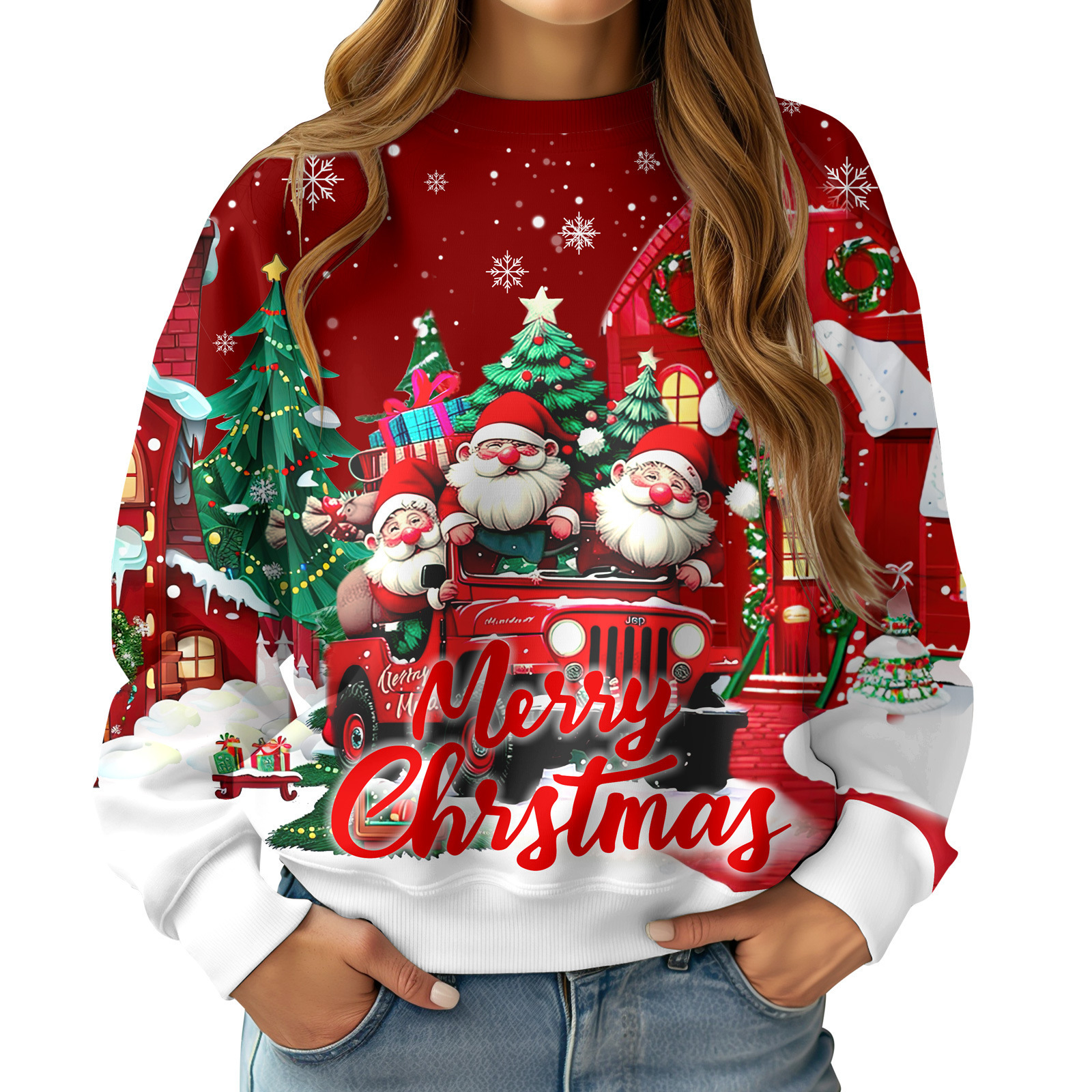源头厂家直销女款批发数码印花秋冬女式卫衣圣诞节雪人圆领休闲卫