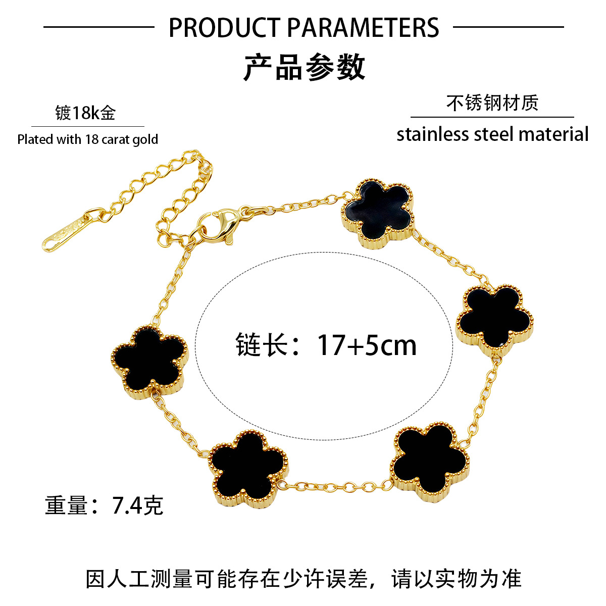 跨境韩版网红气质时尚18k真空红色轻奢 风四叶草手链贝母四叶草厂