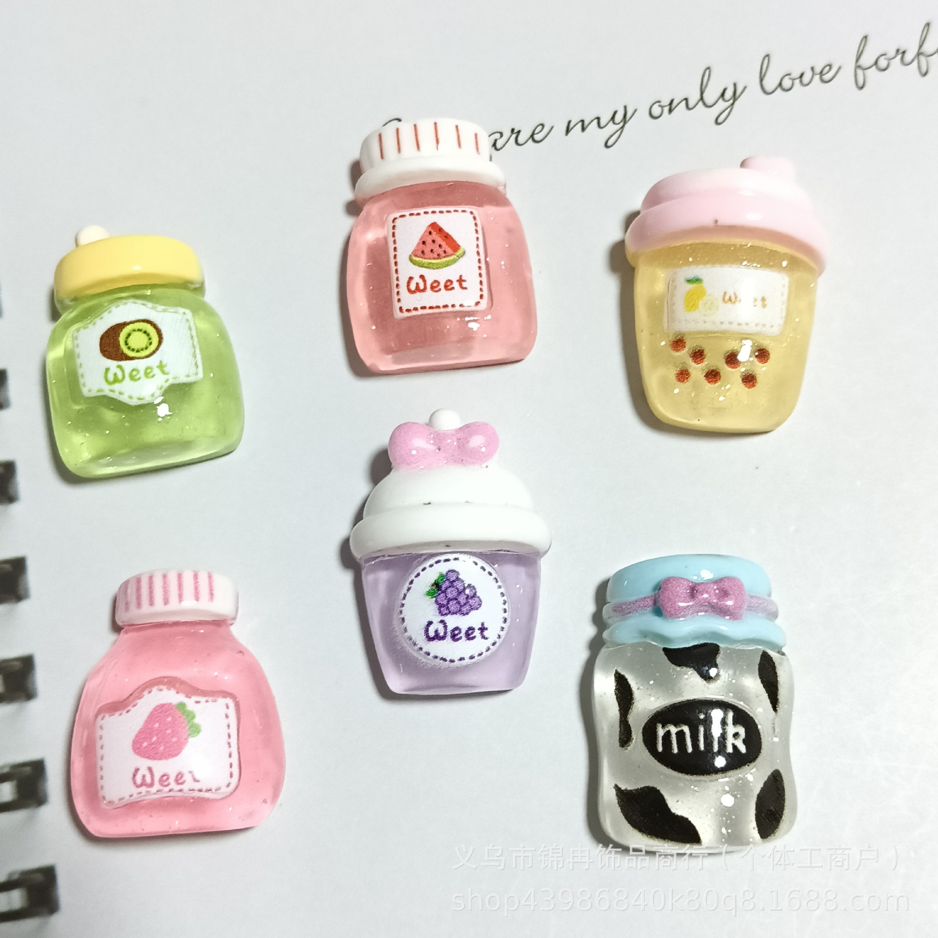 创意卡通细闪透色饮料瓶系列 diy树脂配件手机壳洞洞鞋冰箱贴批发