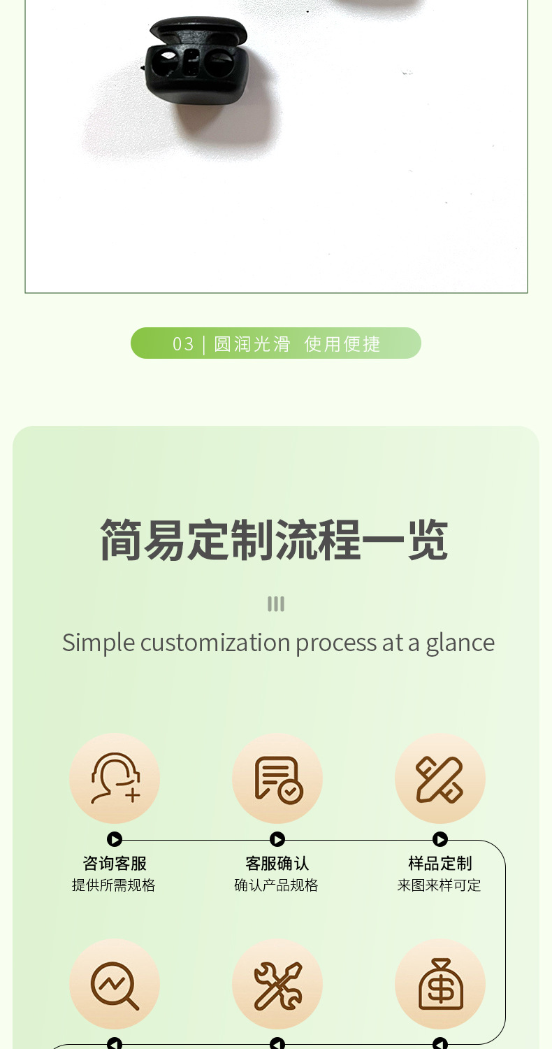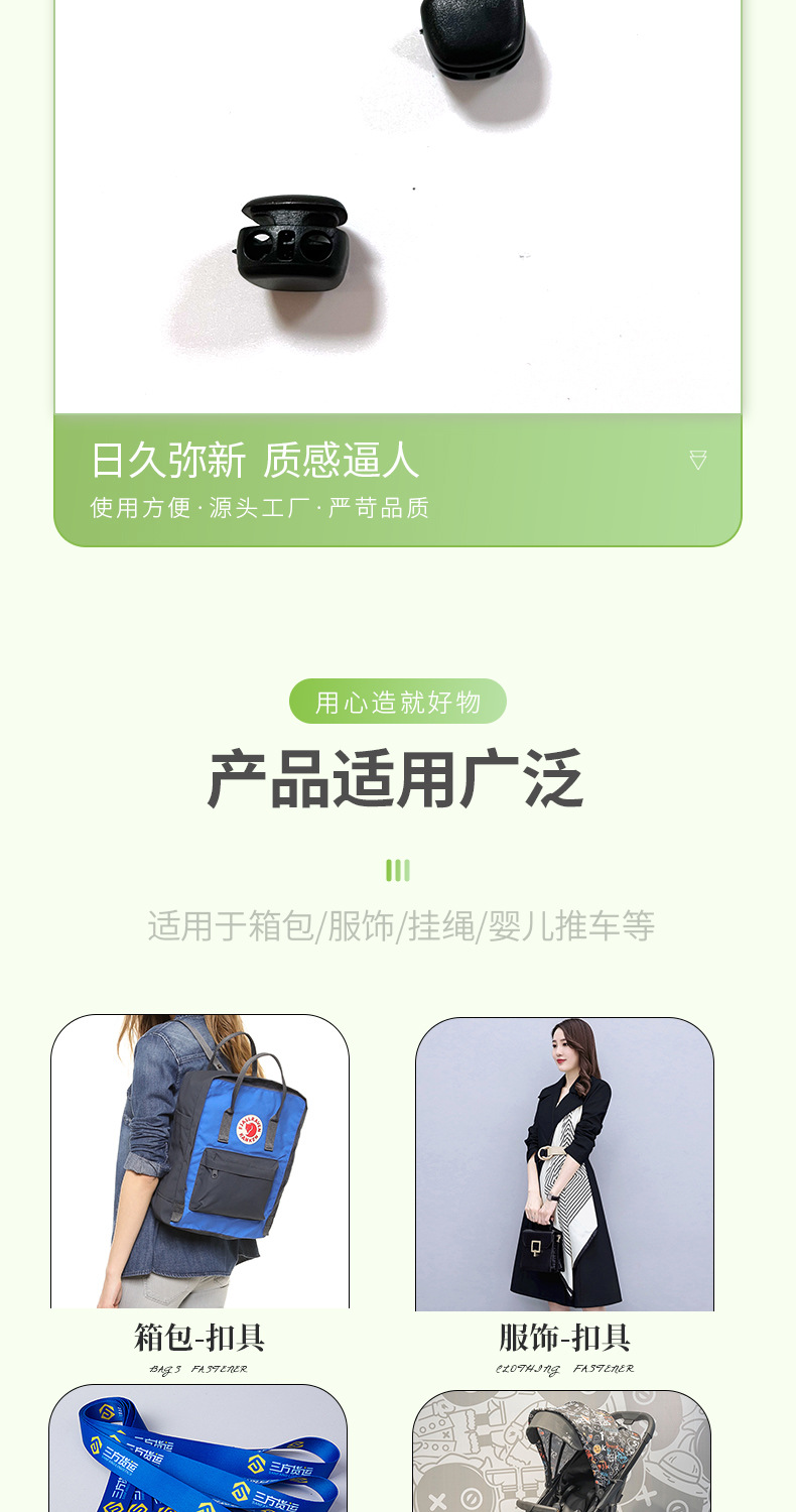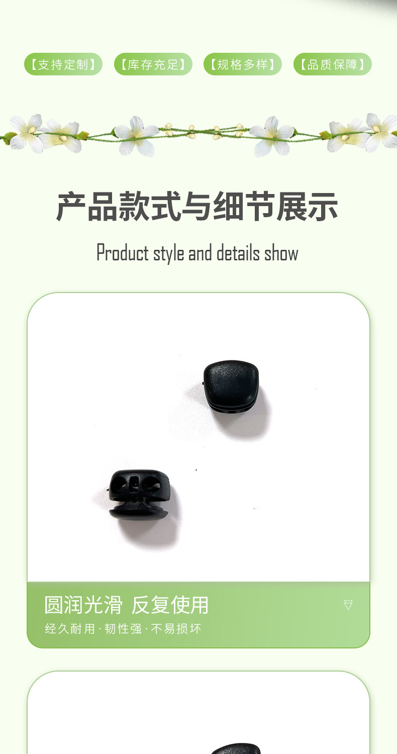 塑料弹簧扣衣帽箱包绳子调节扣小面包扣双孔束口松紧调节绳扣配件