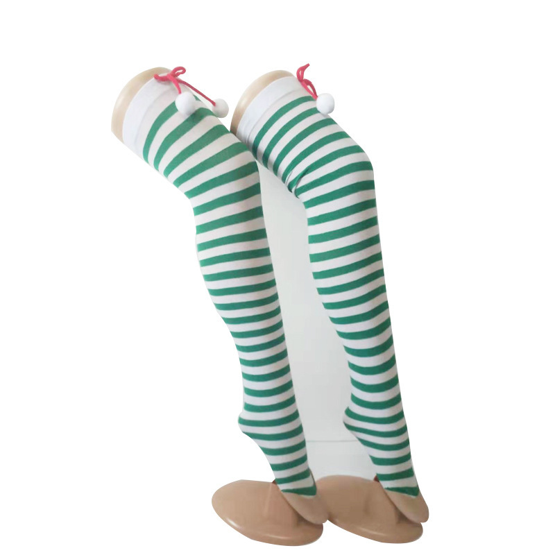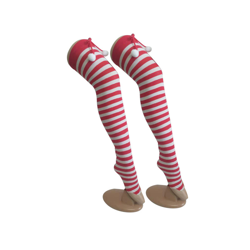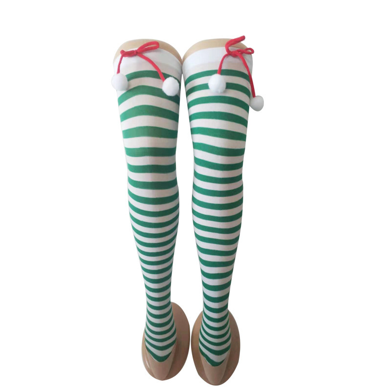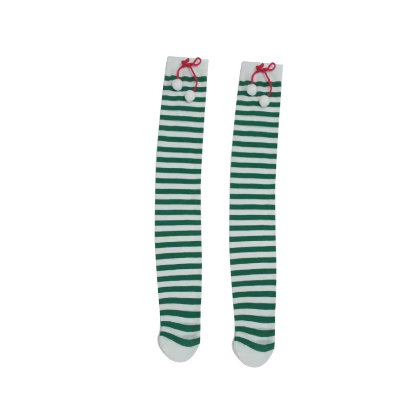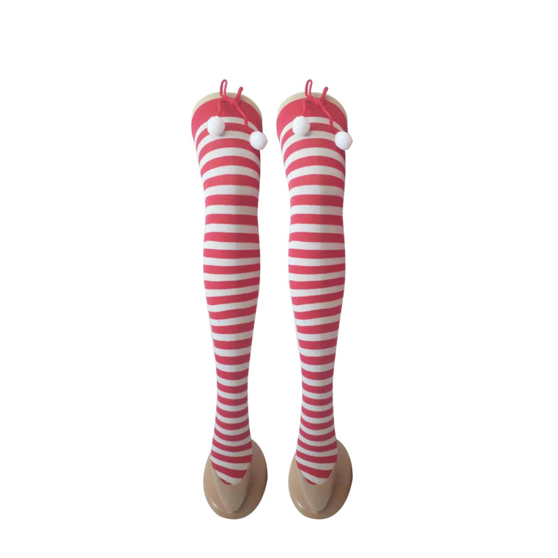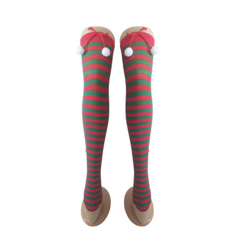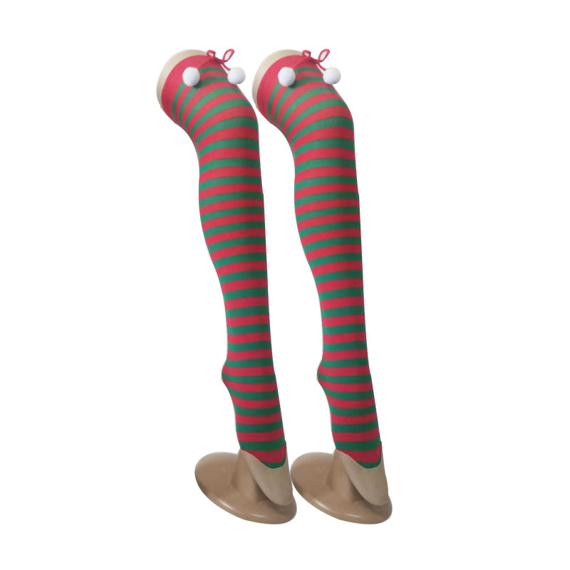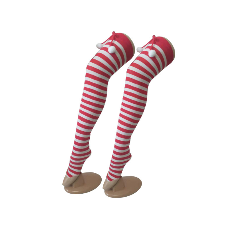 圣诞节袜子派对长筒条纹袜 小球装饰条纹长筒圣诞袜红白条纹袜子