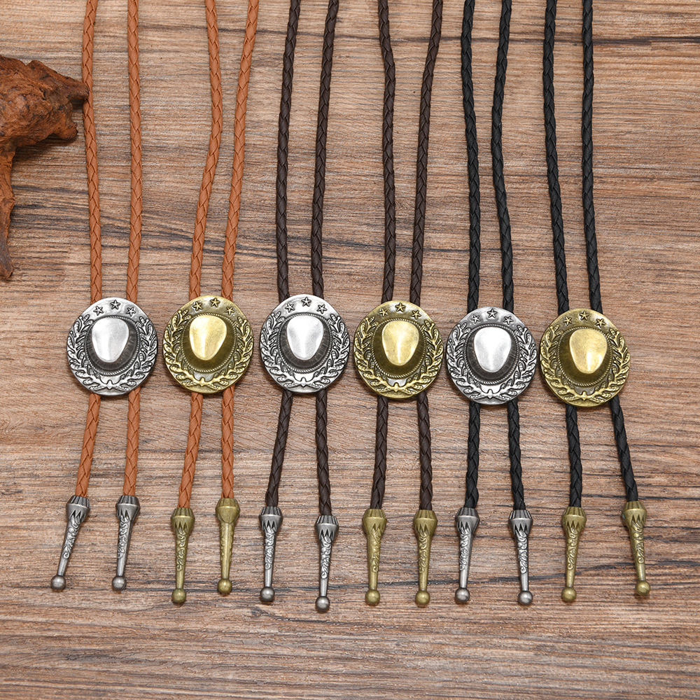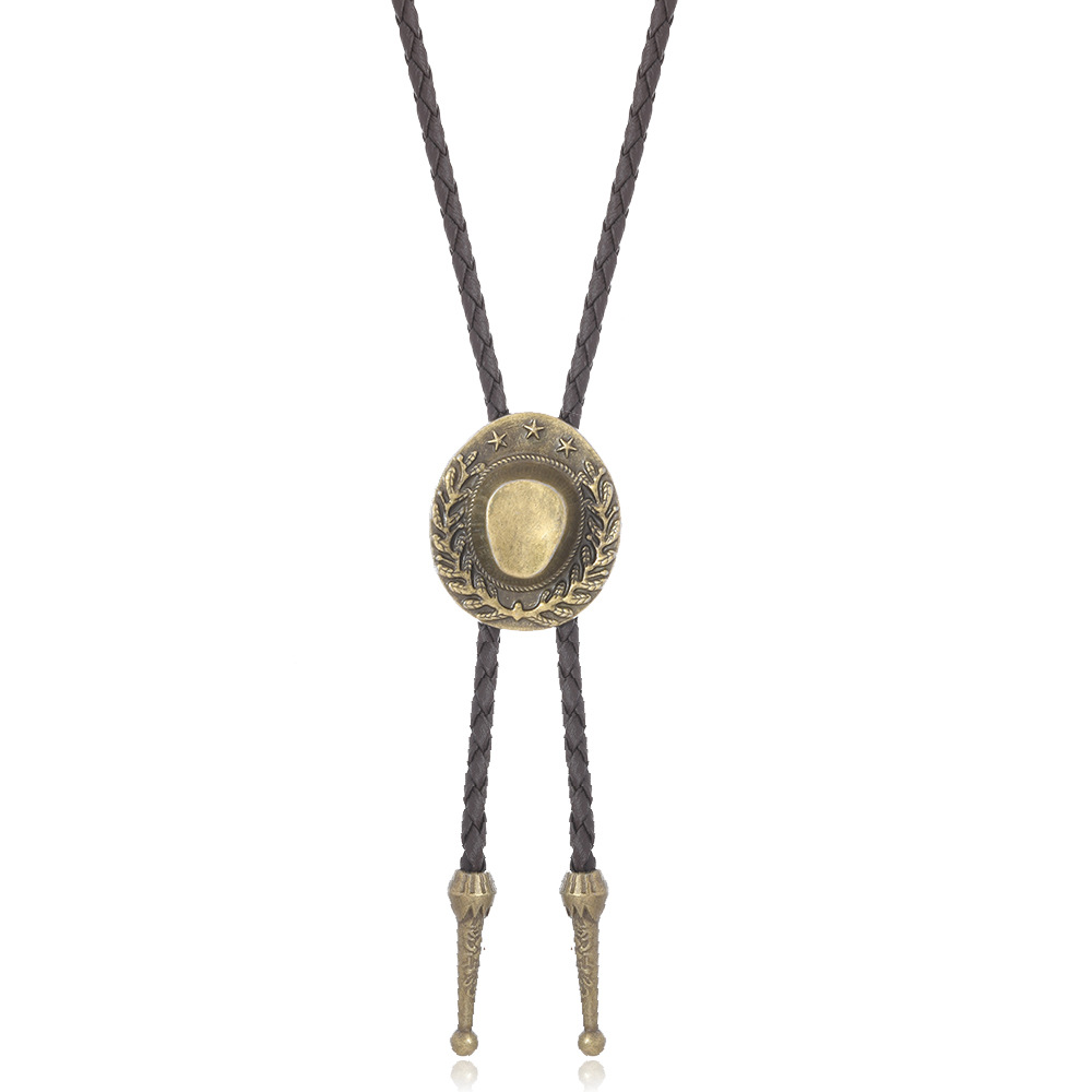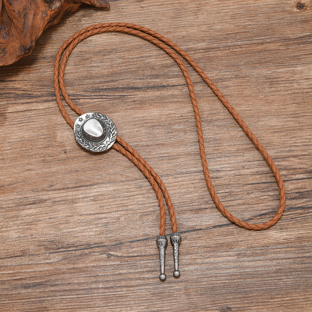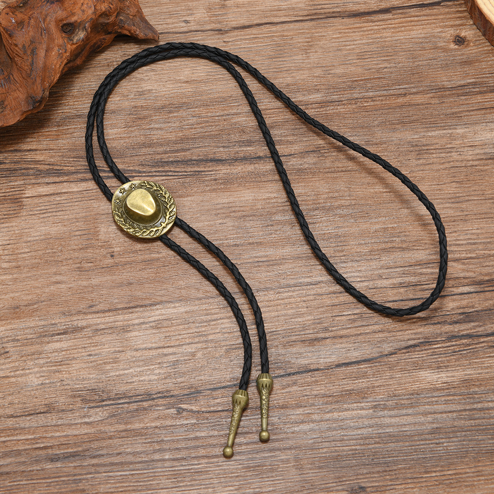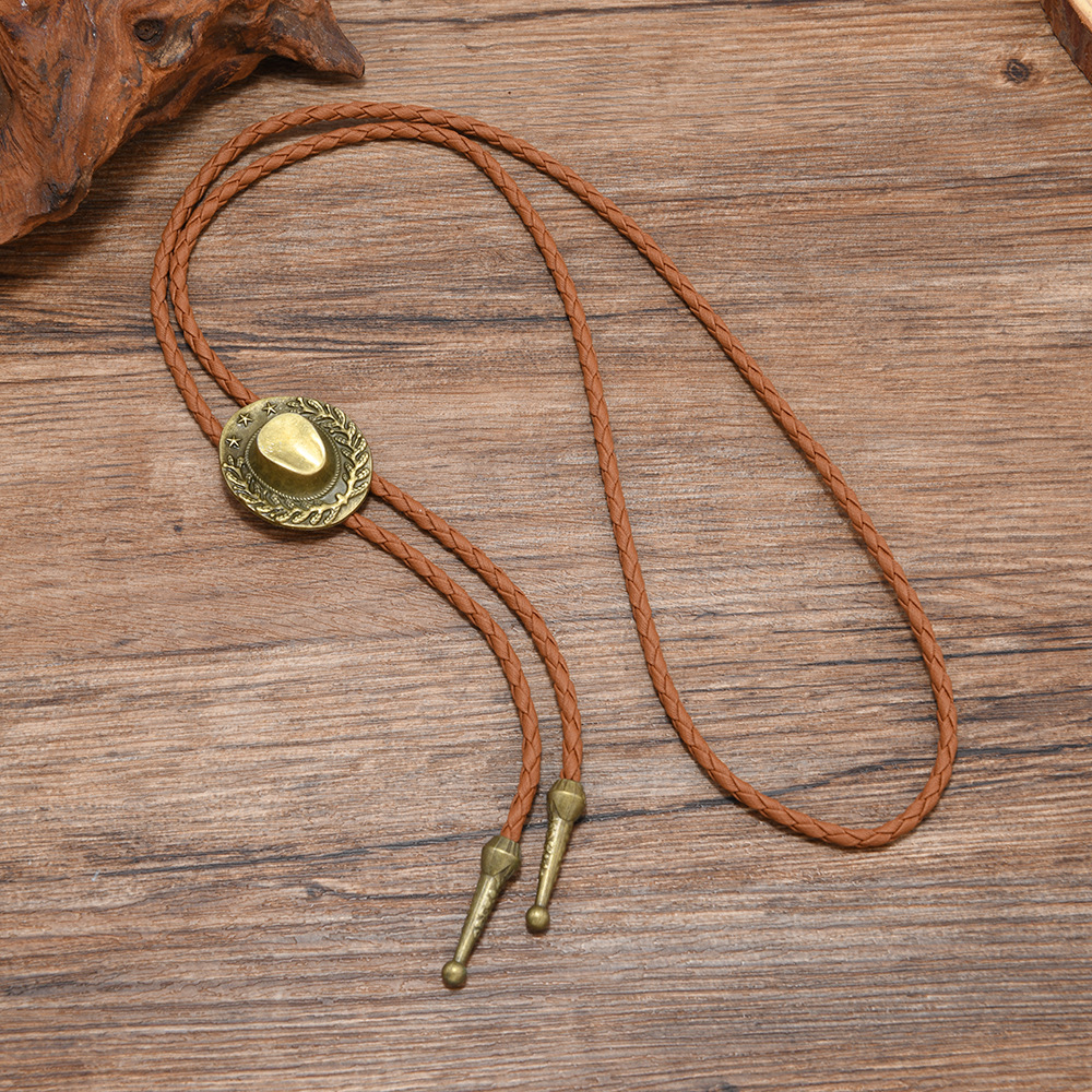 复古牛仔风皮绳波洛领带项链男女款合金帽形吊坠毛衣链情侣配饰