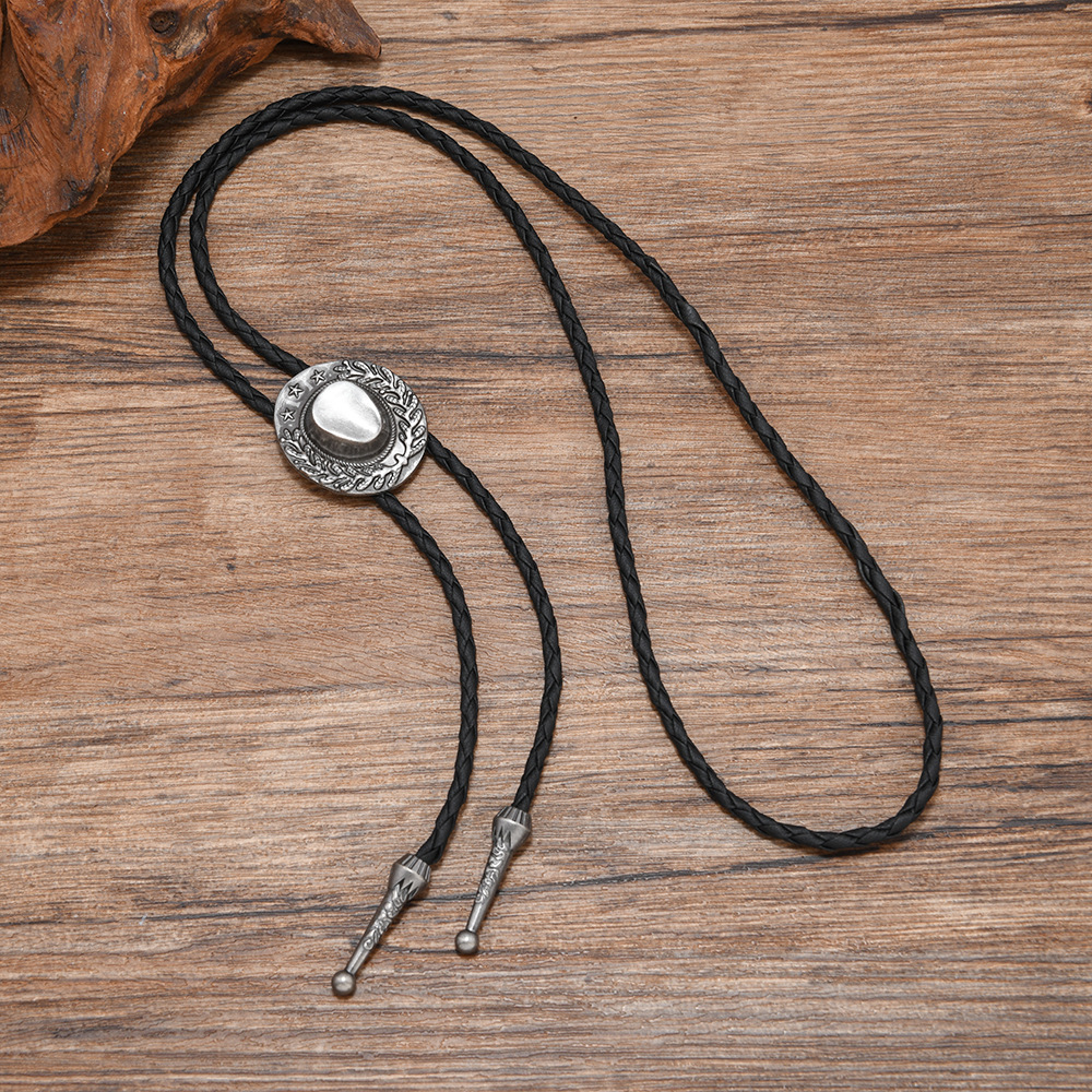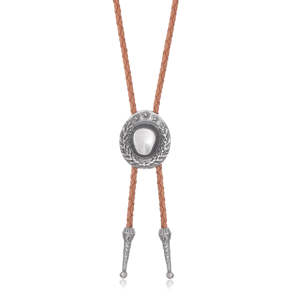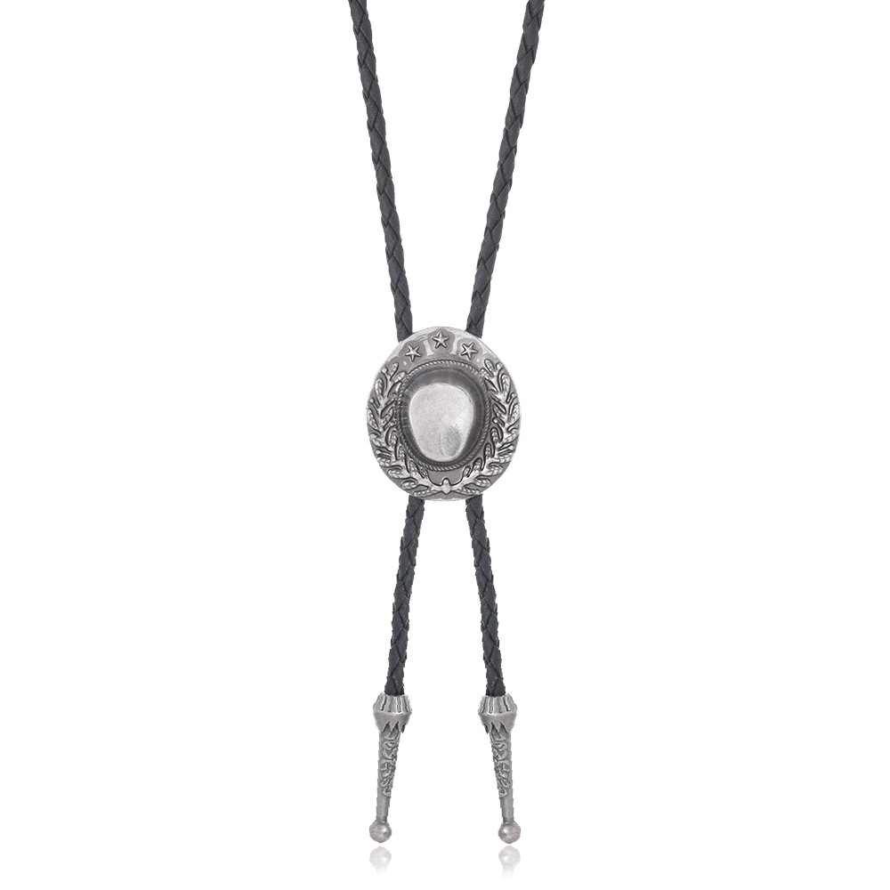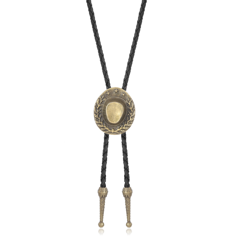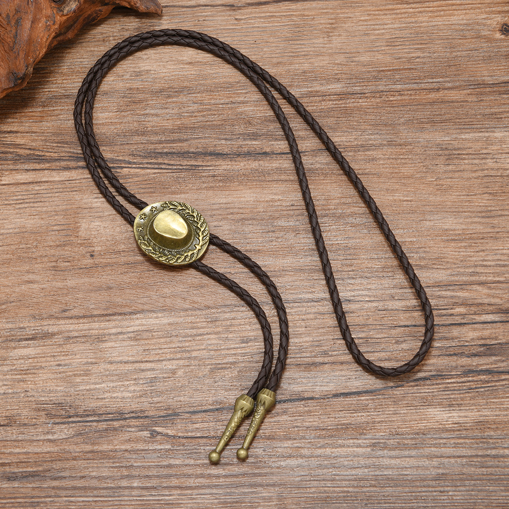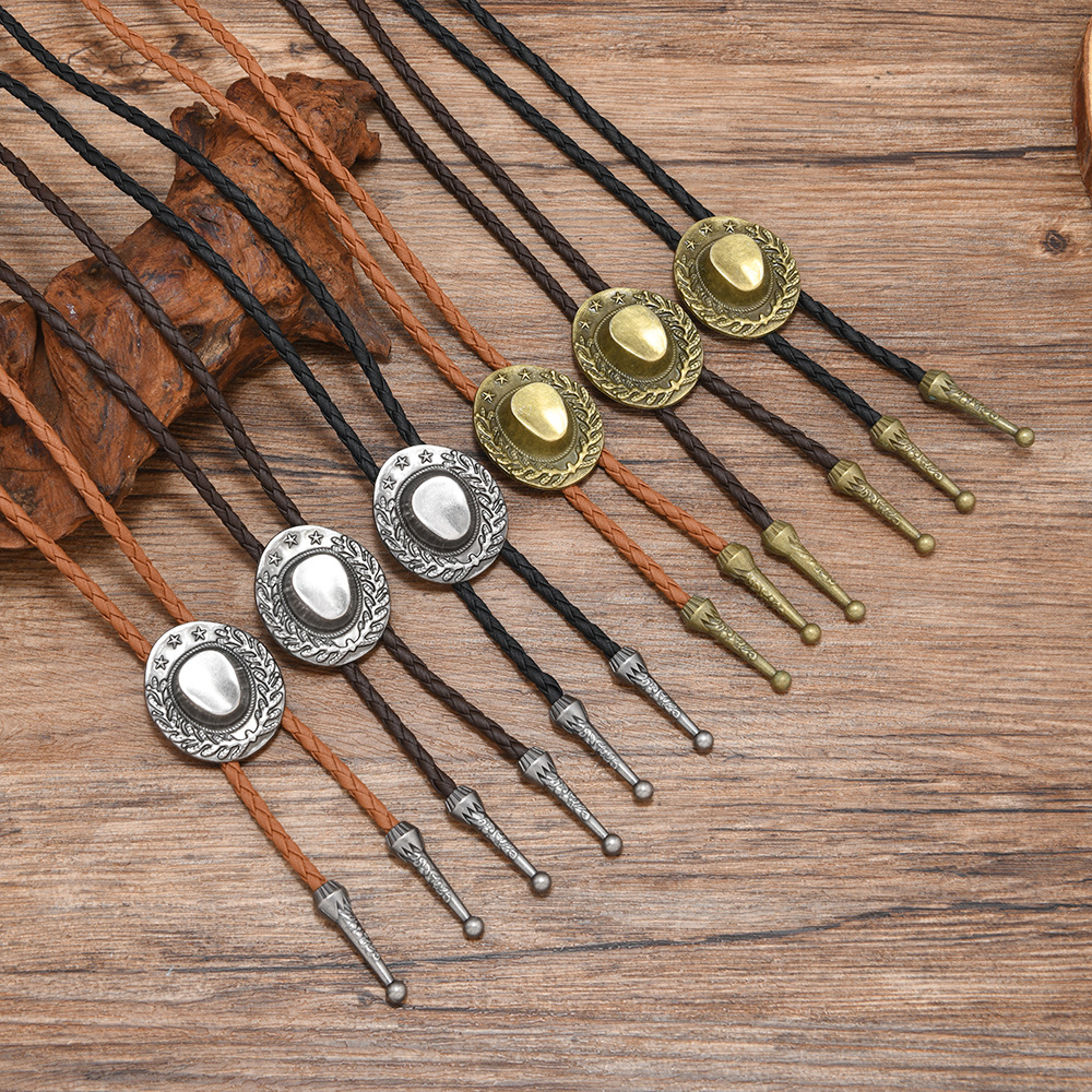 复古牛仔风皮绳波洛领带项链男女款合金帽形吊坠毛衣链情侣配饰