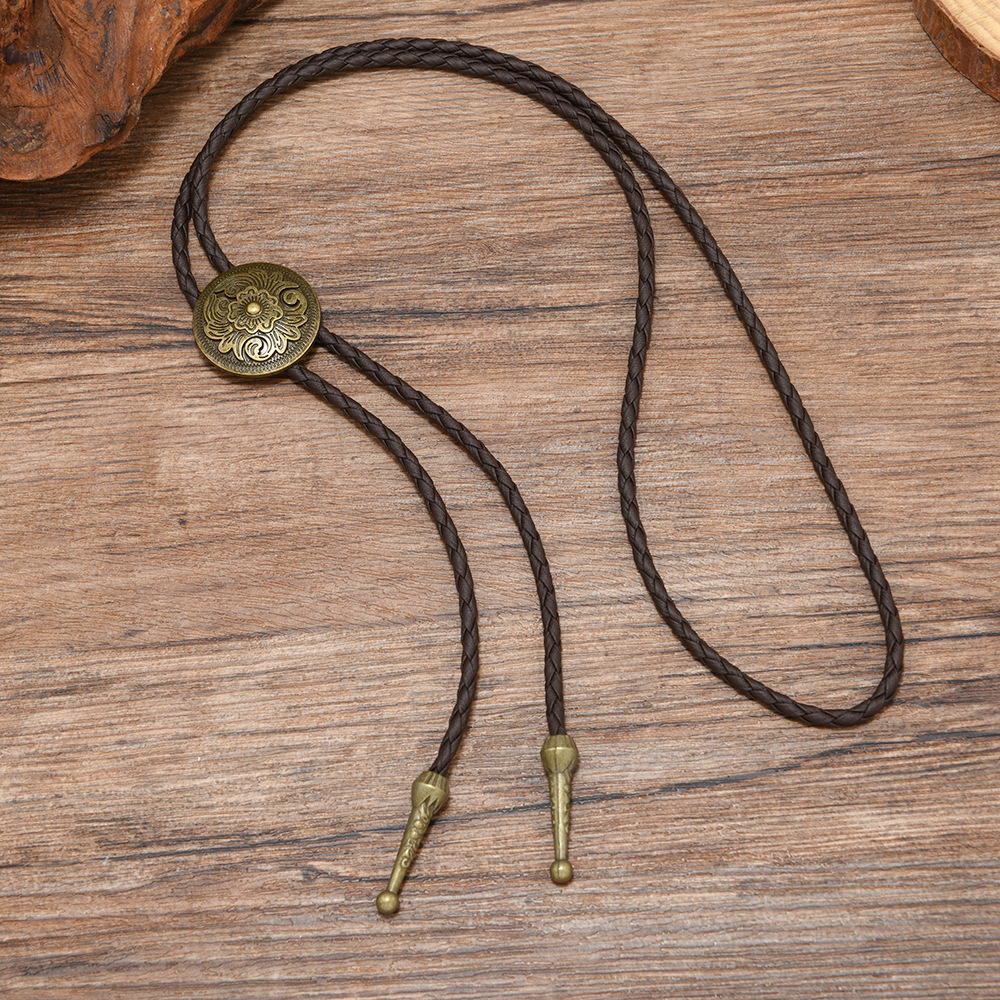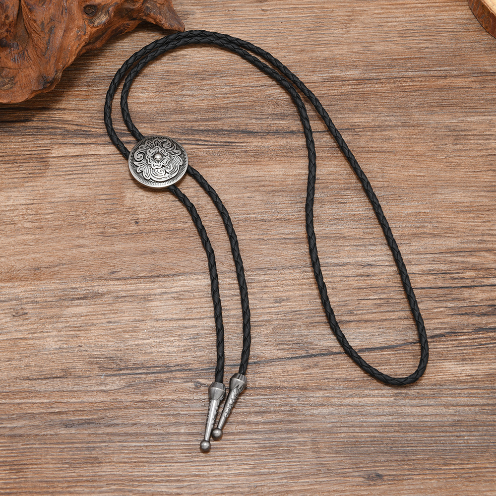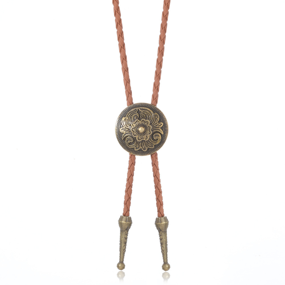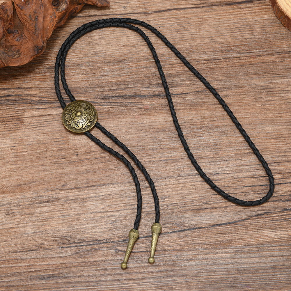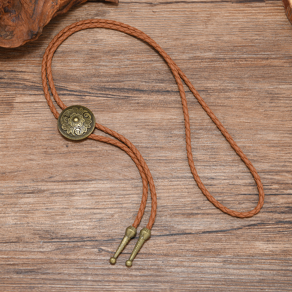 复古编织皮绳领结男女通用西部风金属吊坠项链时尚百搭配饰