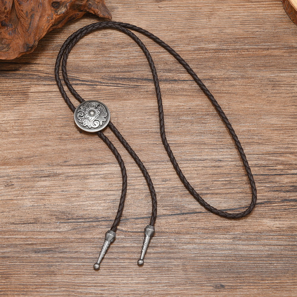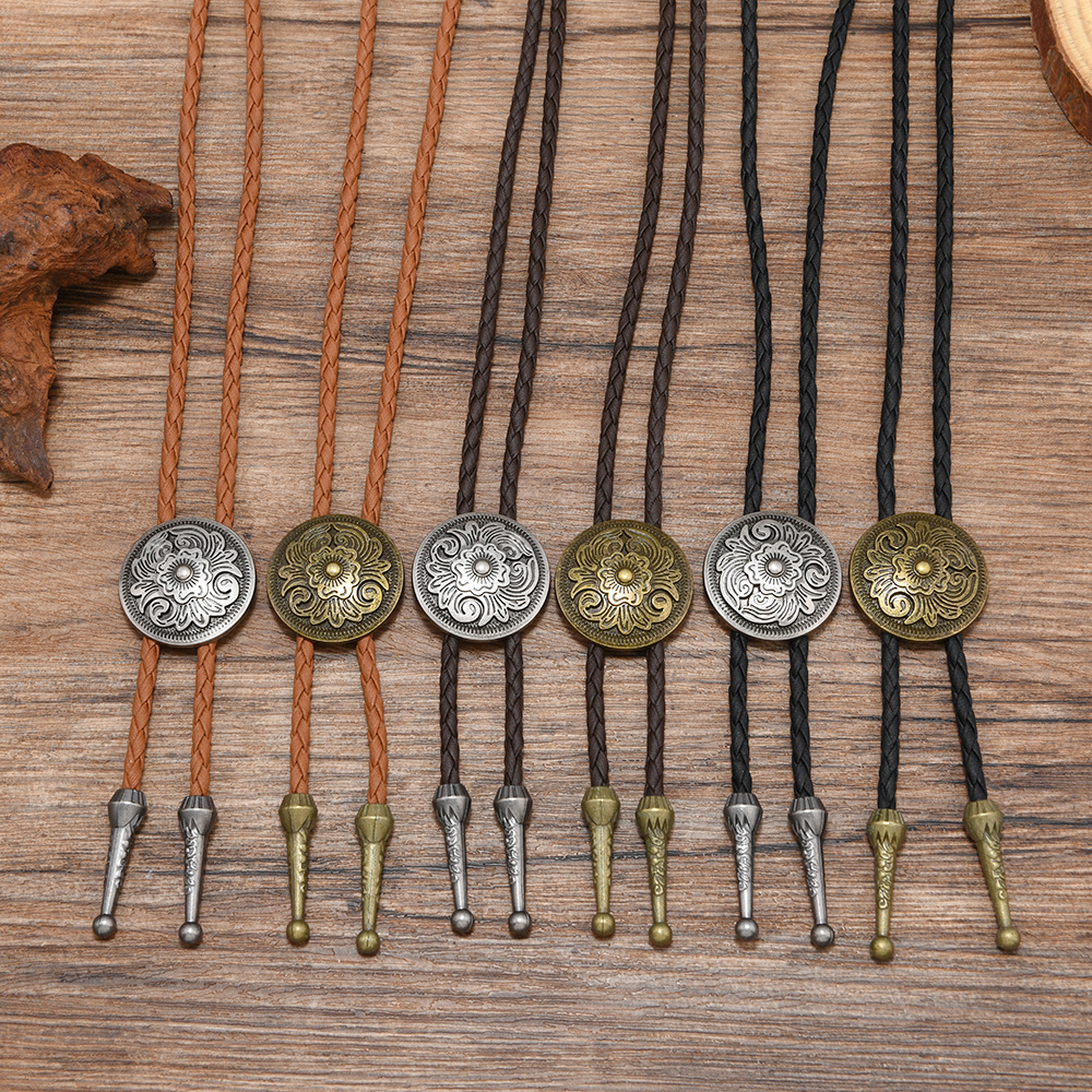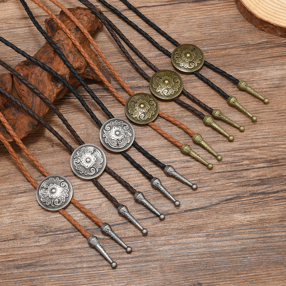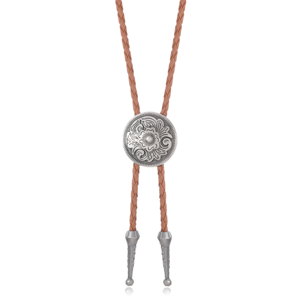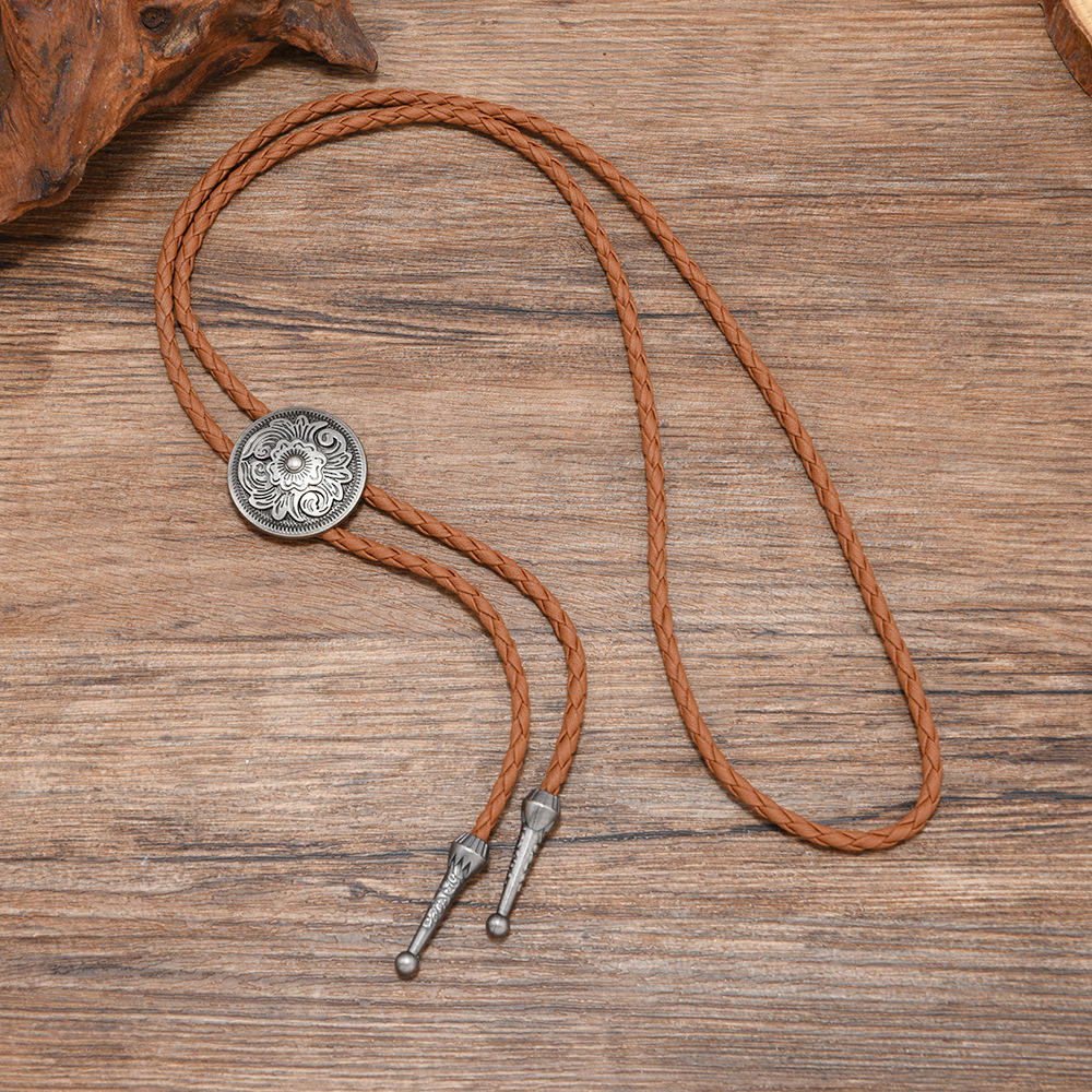 复古编织皮绳领结男女通用西部风金属吊坠项链时尚百搭配饰