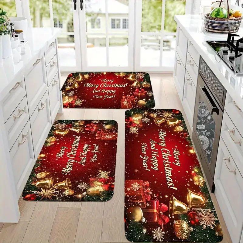 跨境厨房地垫家用吸水防滑圣诞节装饰地毯可代发水晶绒玄关脚踩垫