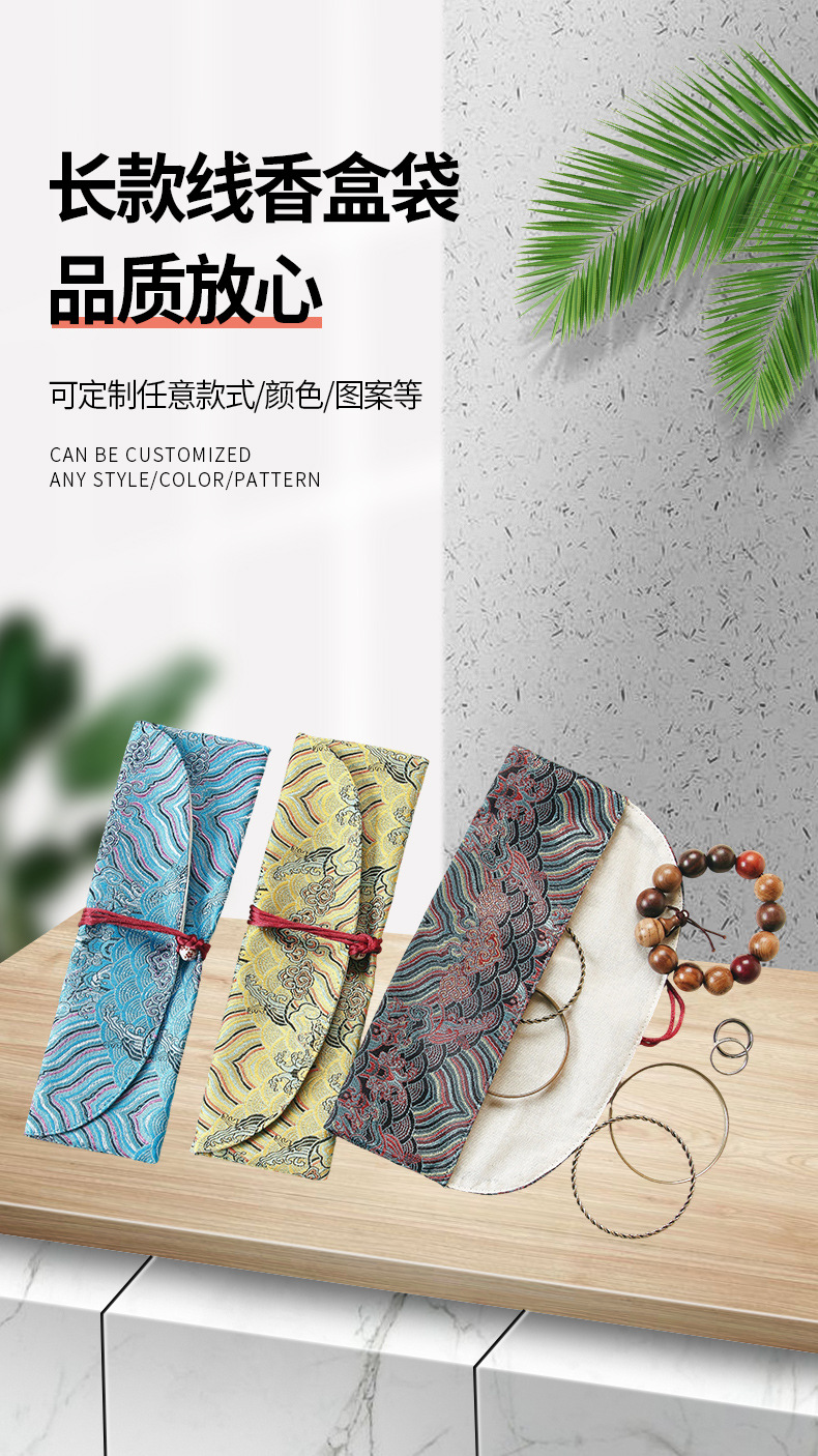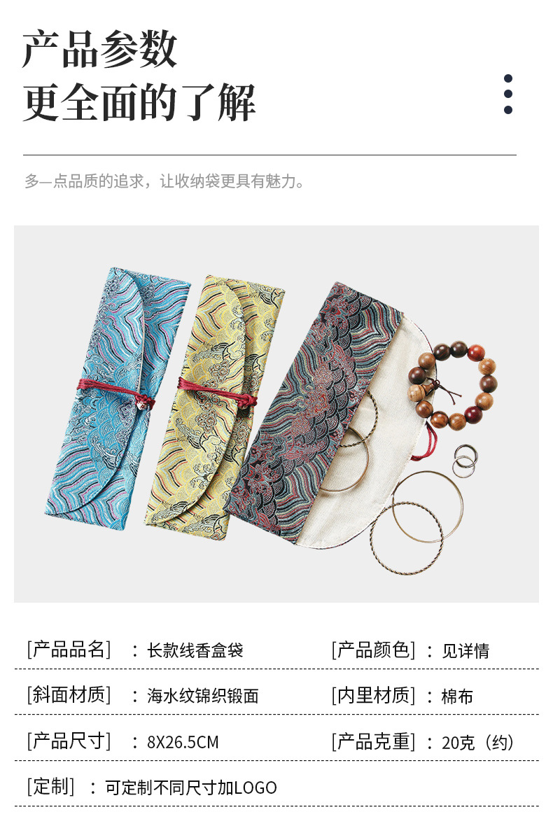 长款线香盒文玩珠宝海水纹锦织香炉线香盒便携旅行布袋收纳袋厂家