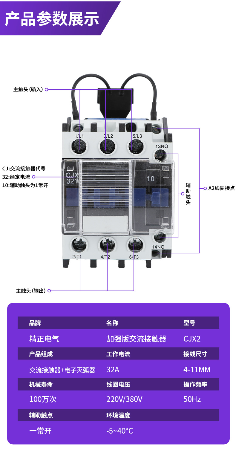 加强版交流接触器静音节能CJX2-3210配JZ3-C灭弧器220/380v接触器