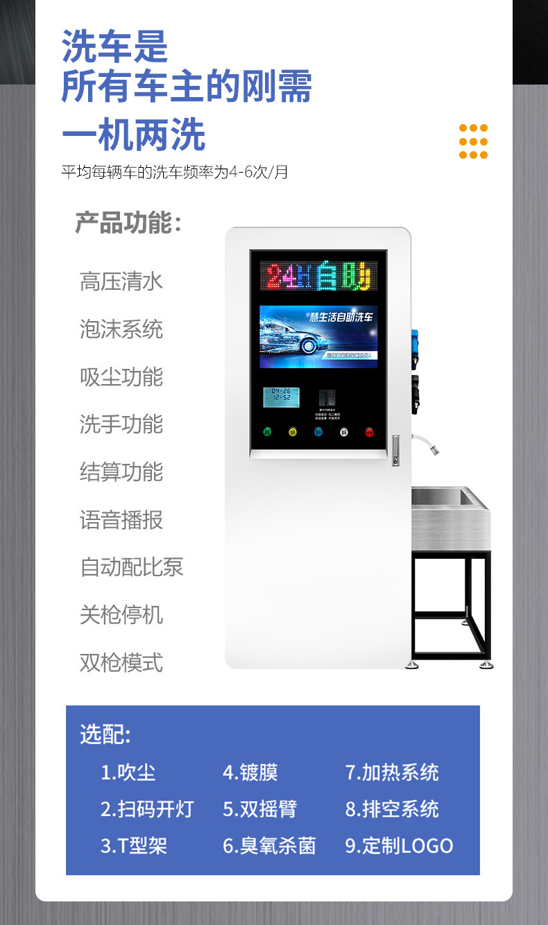 厂家直供新款洗车机商用24小时全自动大功率高压清水自助洗车机