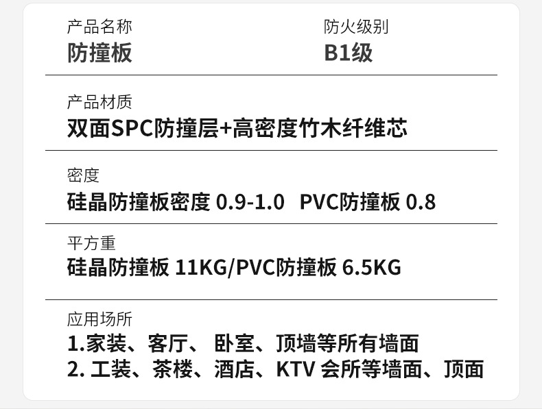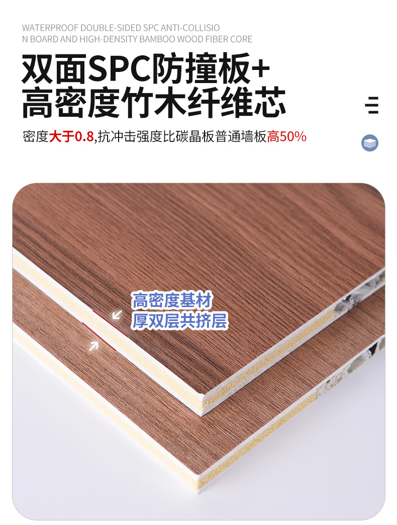 防撞板墙板专用碳晶板双面spc防撞板竹木纤维芯金刚板木纹装饰板