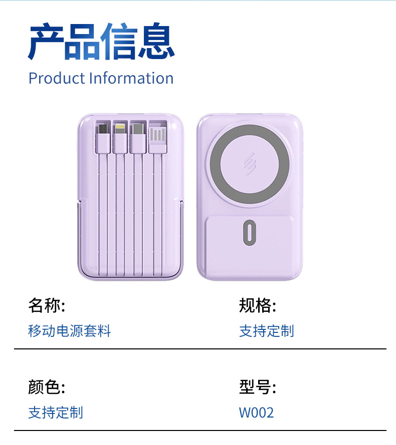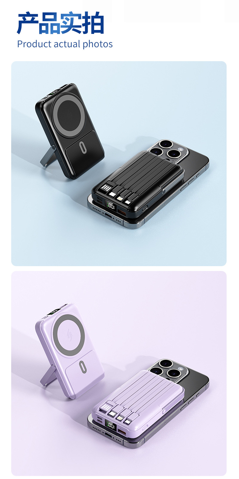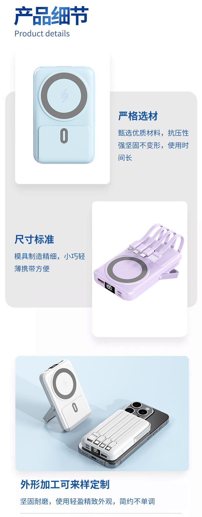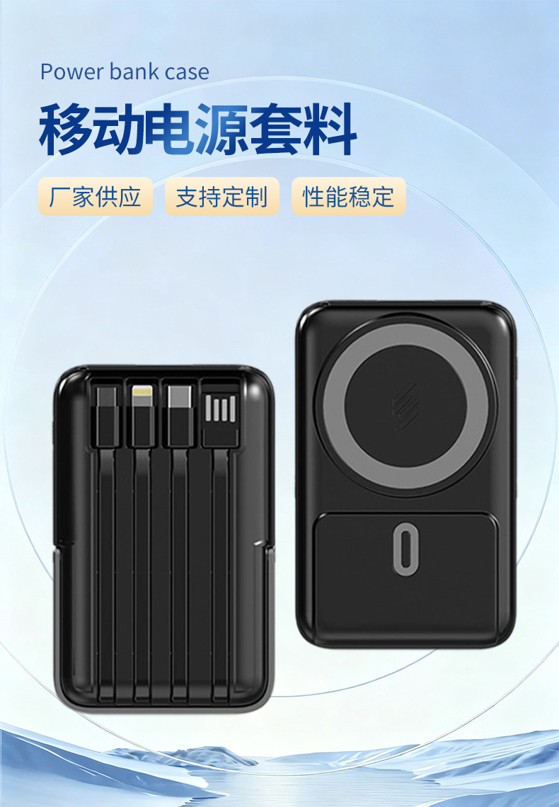 移动电源外壳磁吸充电宝外壳迷你移动电源三合一无线移动电源套料