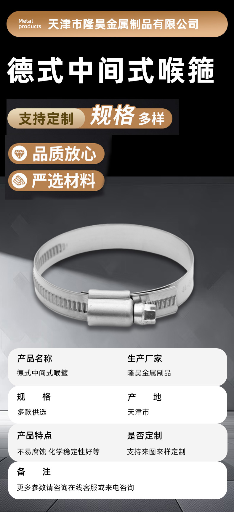 DIN3017德式喉箍中间式304不锈钢软管管道抱箍高压卡箍厂家批发价