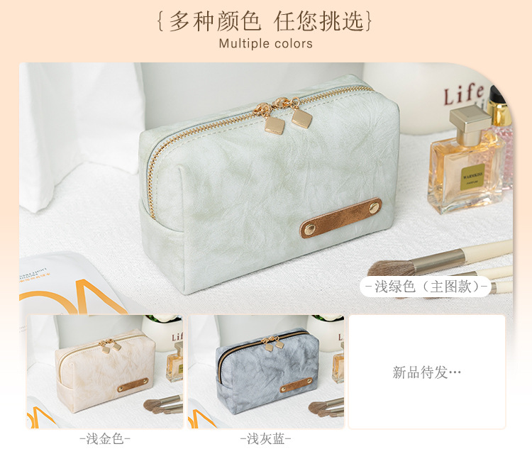 新款大容量高级感化妆包男女士PU皮革手拿包耐磨小包收纳袋