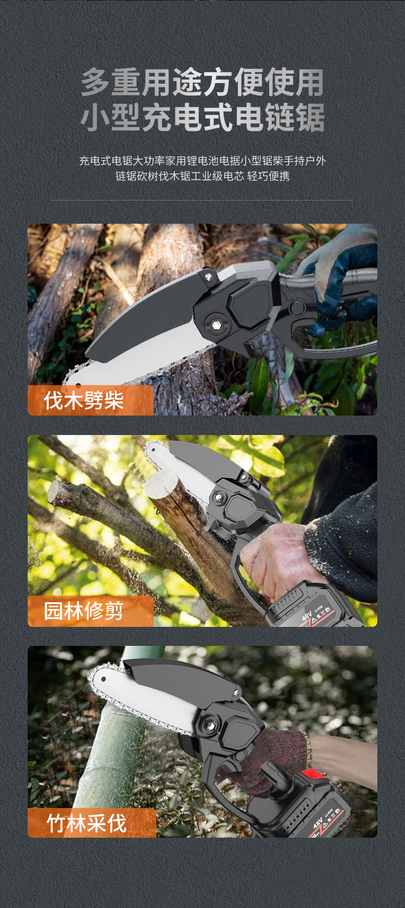 充电家用电锯小型伐木锯锂电池园林果树修枝锯无线户外伐木电链锯