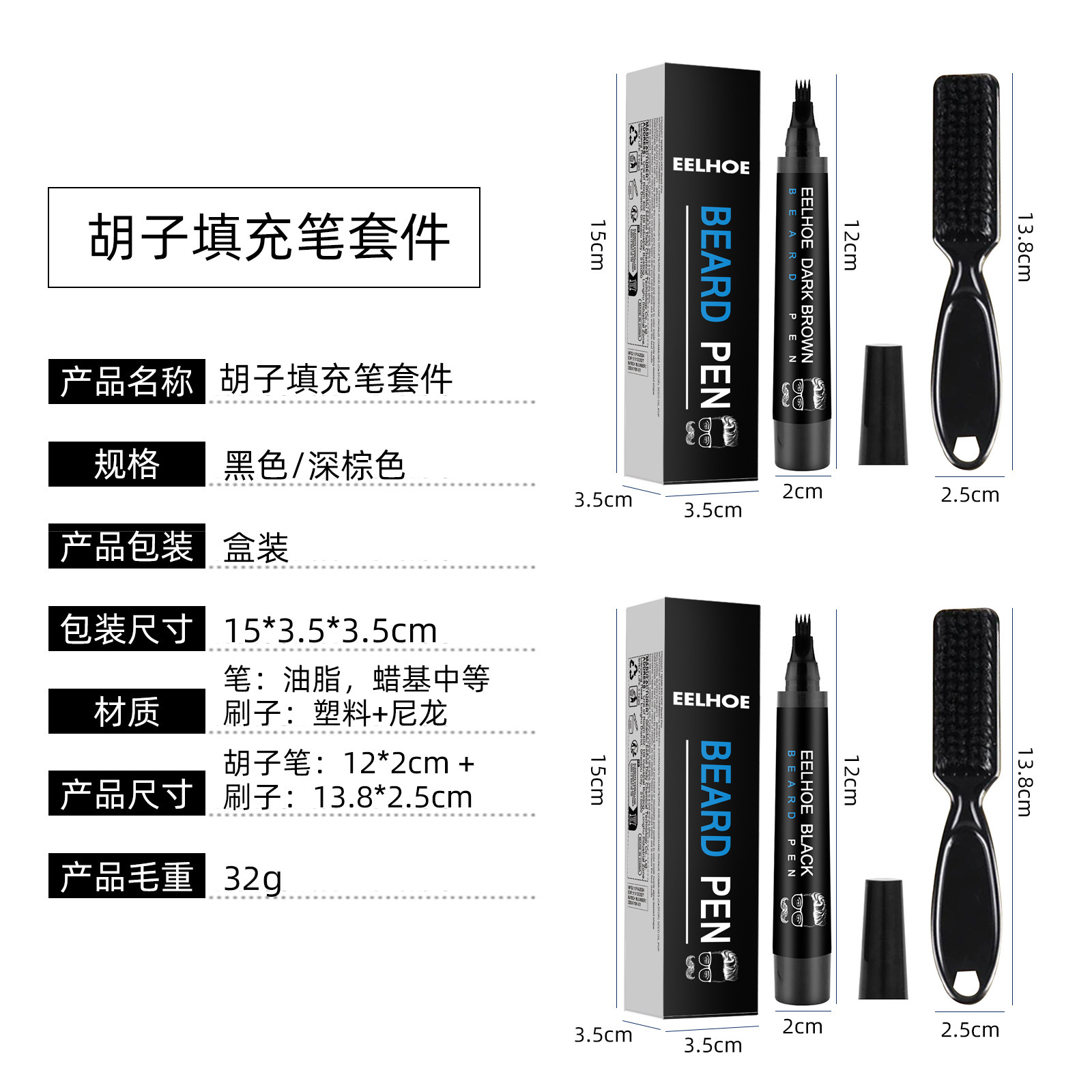 EELHOE 胡子填充笔套件 男士胡须自然防水胡子笔胡须描笔,批发价,价格:8,厂家直销,EELHOE 胡子填充笔套件 男士胡须自然防水胡子笔胡须描笔,免费拿样。