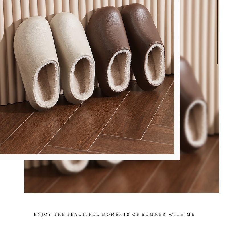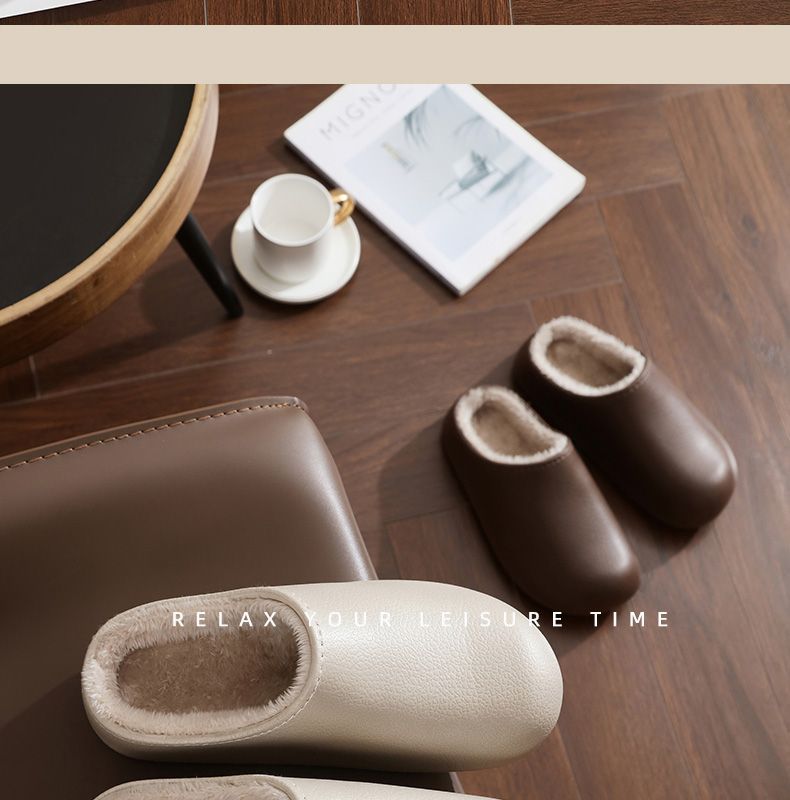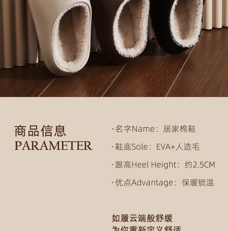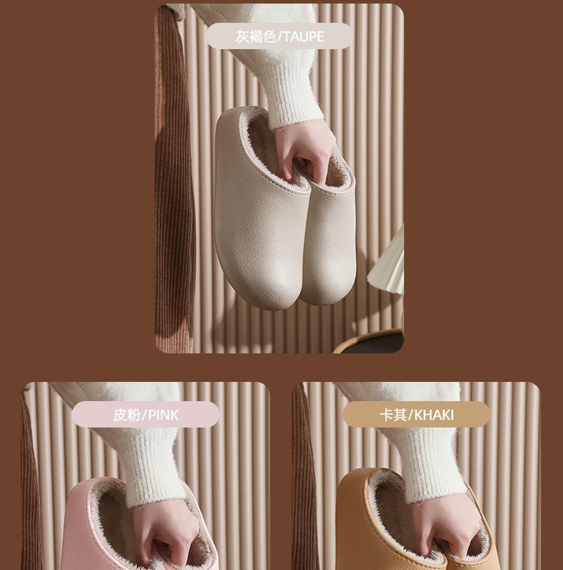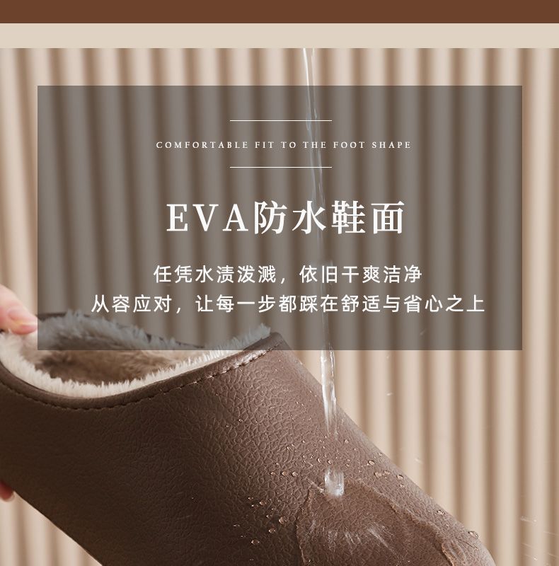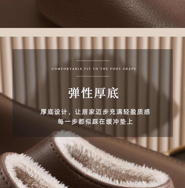 推荐理由:冬季防皮质防水棉鞋简约通用男女款加绒保暖鞋多色厚底防滑居家鞋