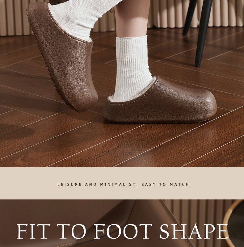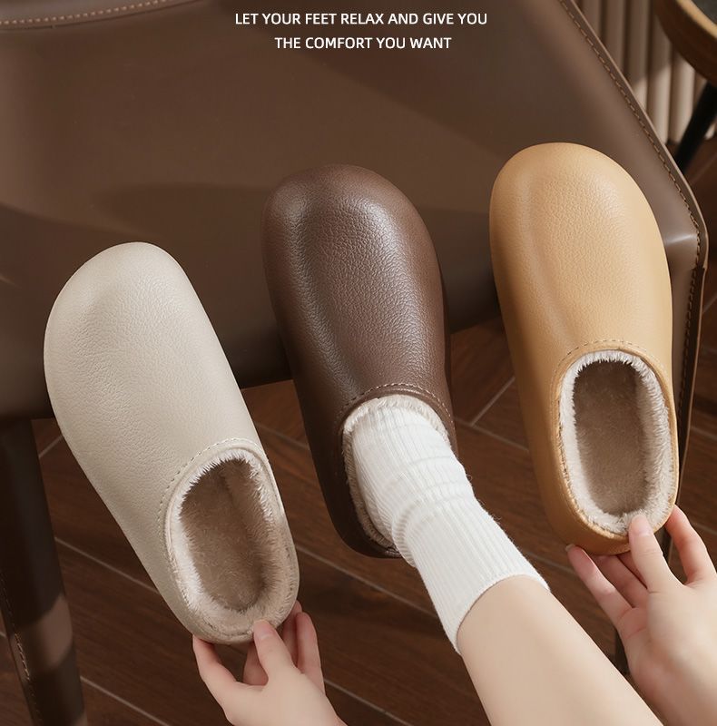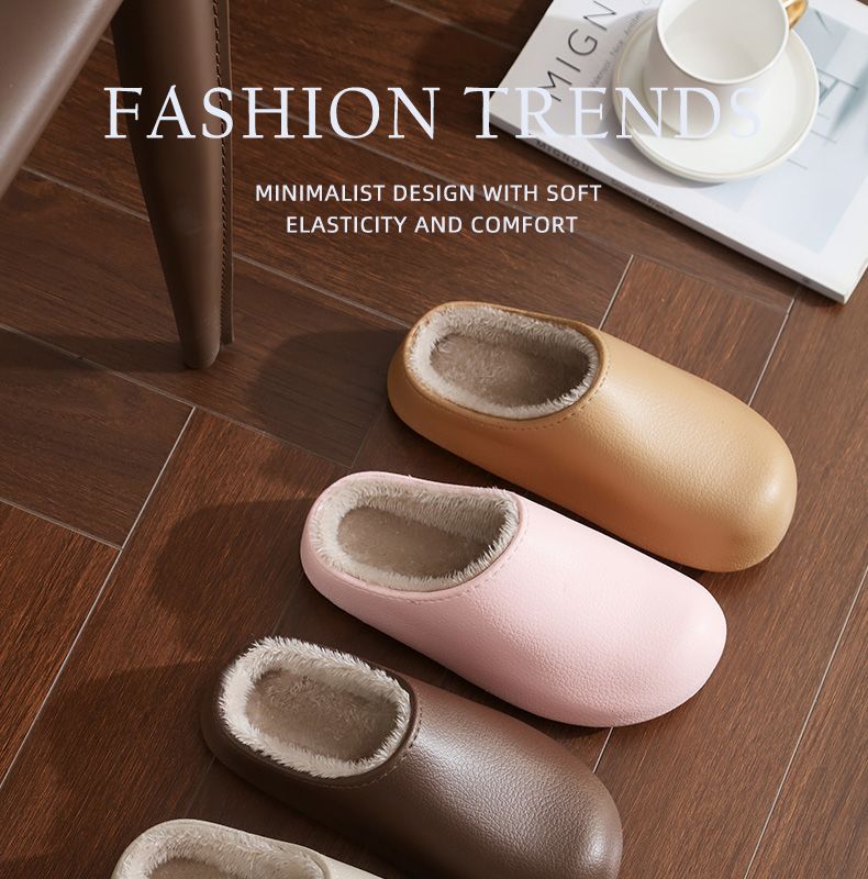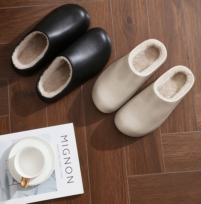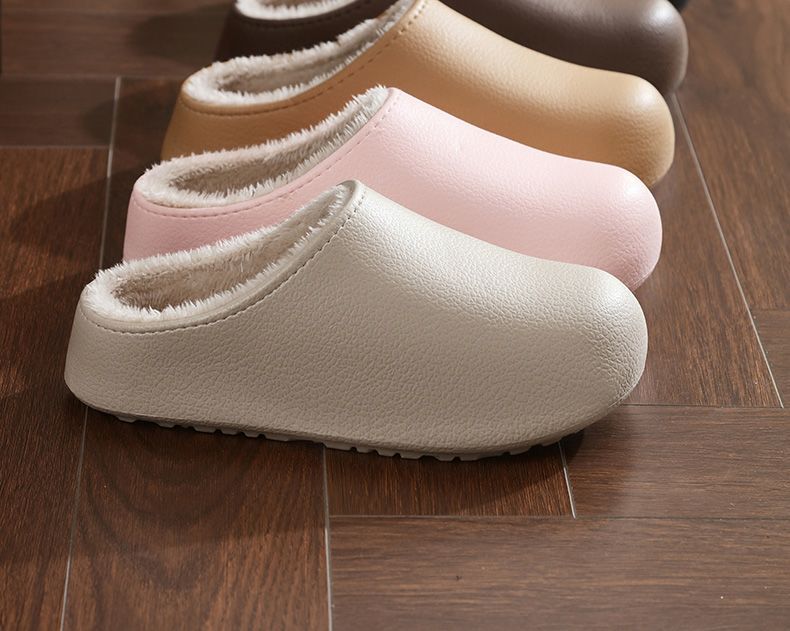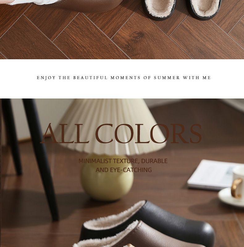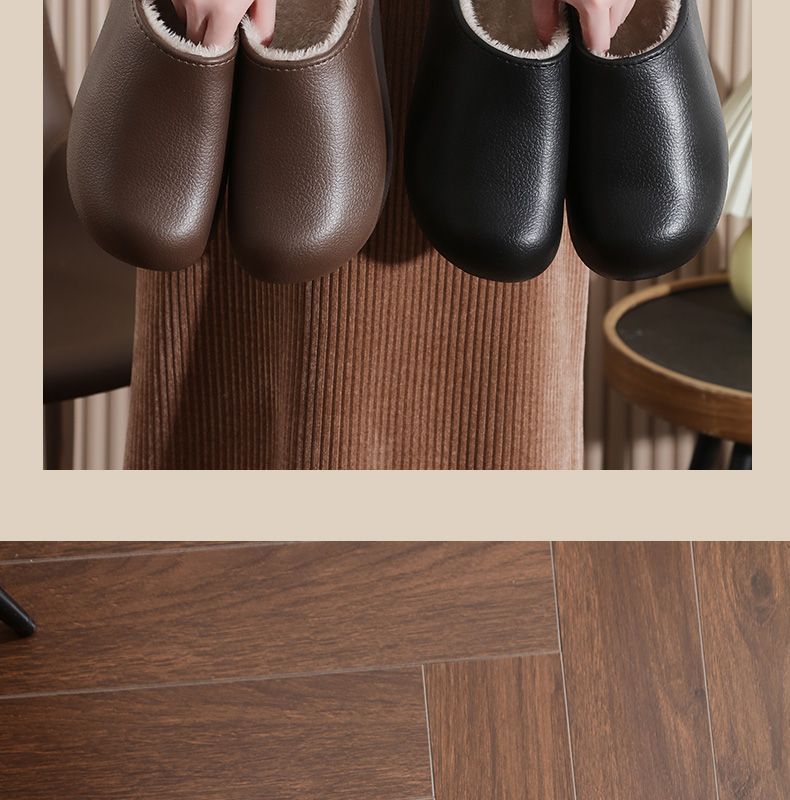 推荐理由:冬季防皮质防水棉鞋简约通用男女款加绒保暖鞋多色厚底防滑居家鞋