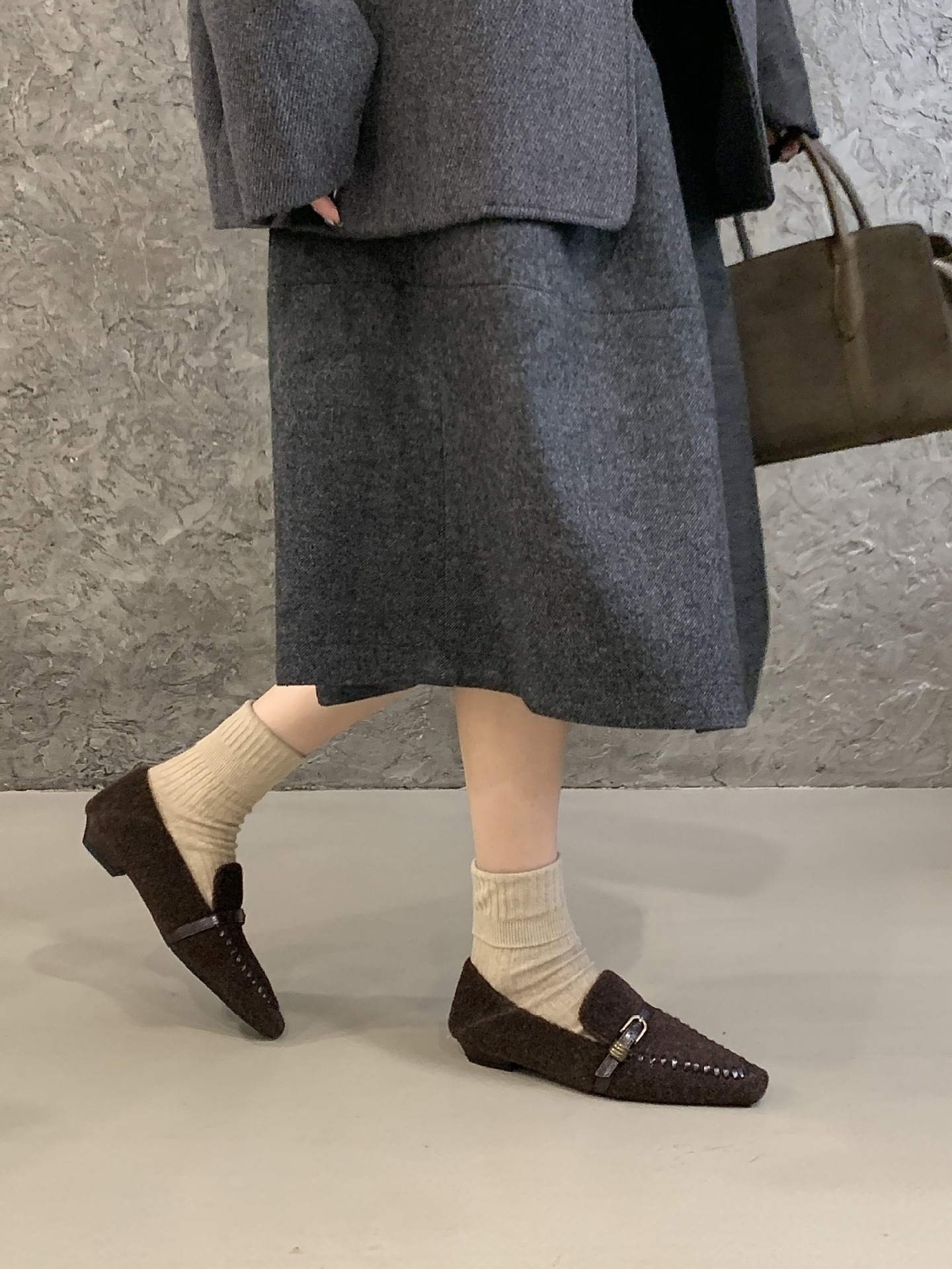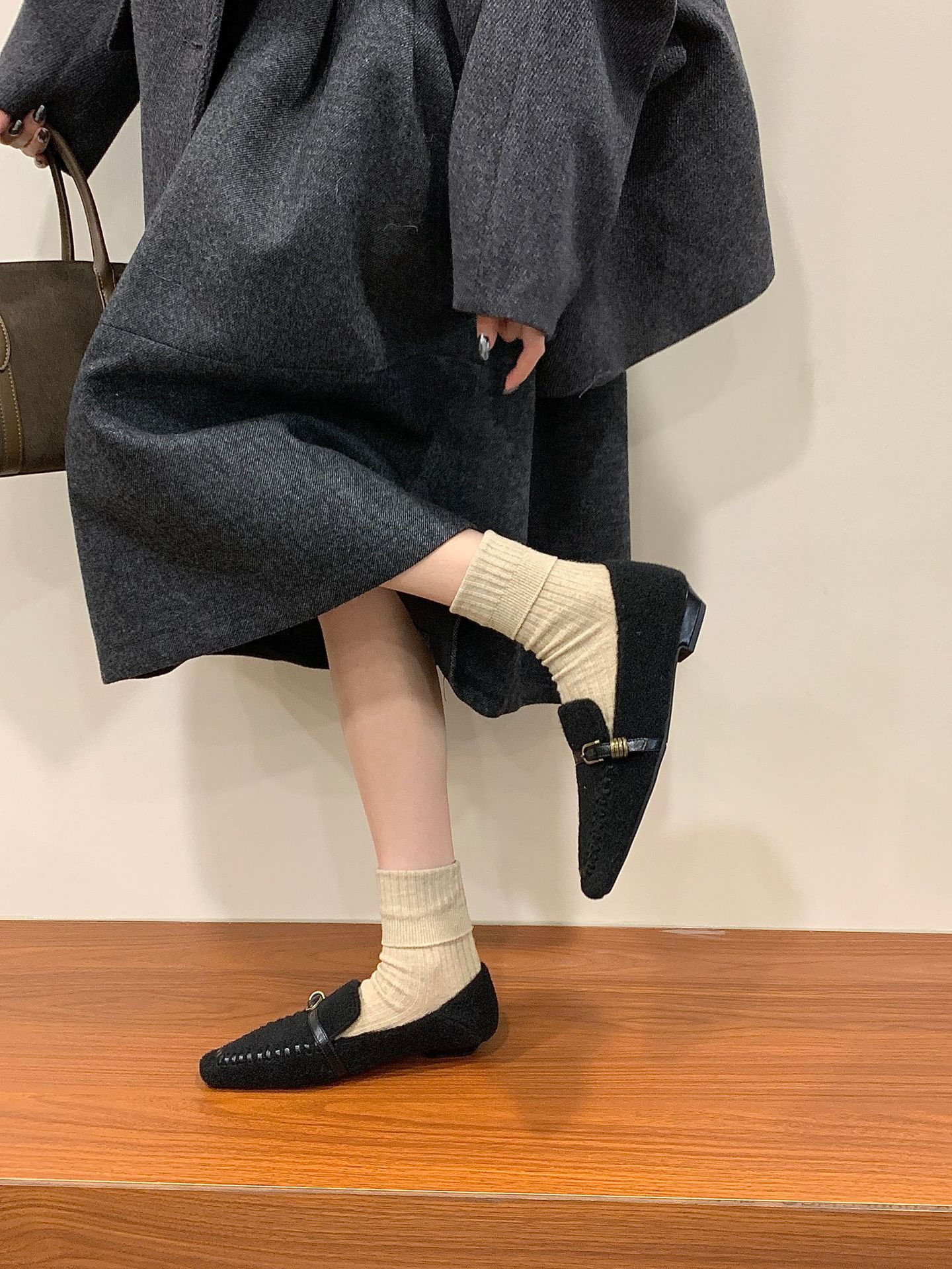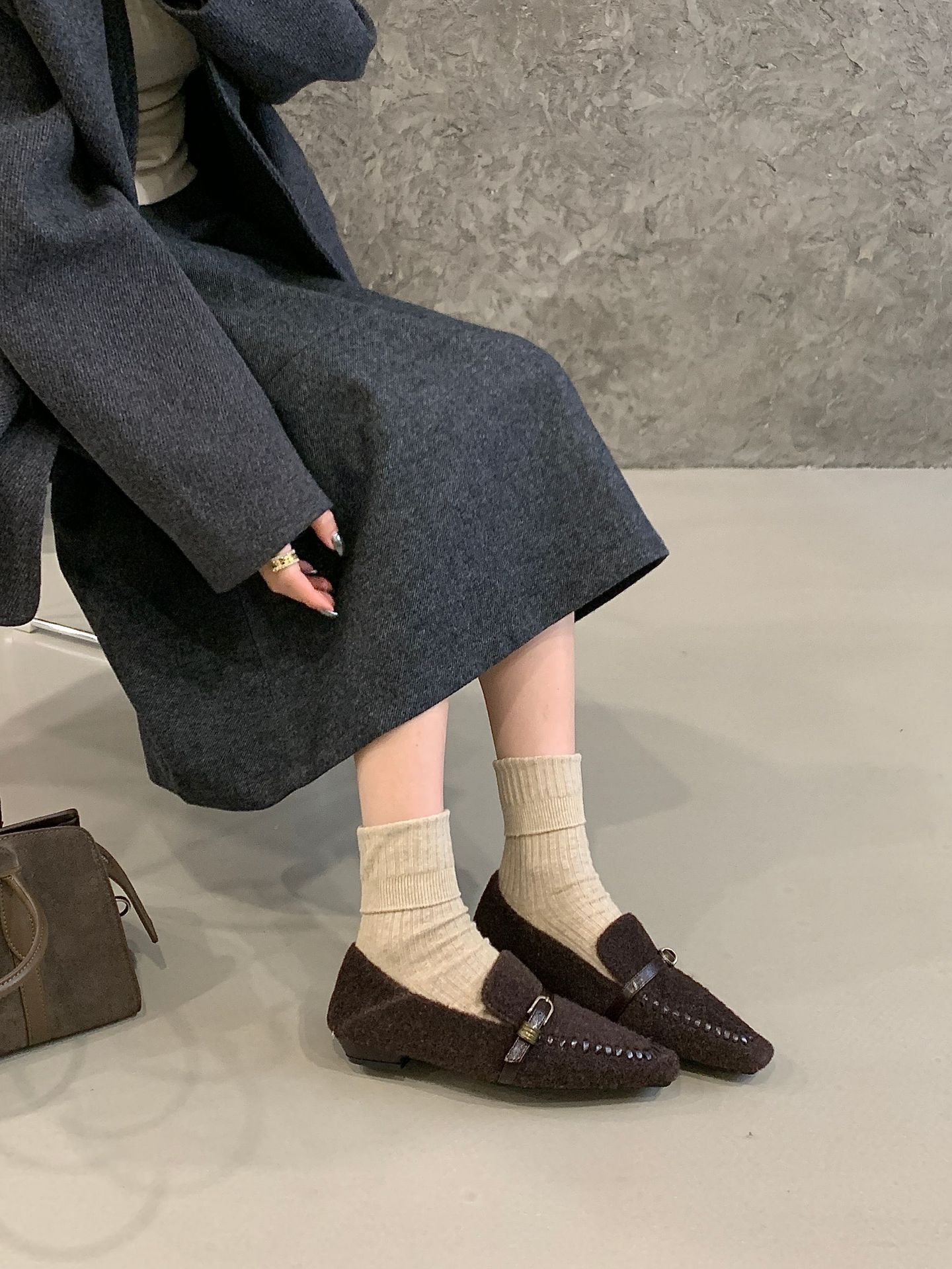 毛毛鞋 加绒保暖 一字带扣 深口鞋 通勤棉鞋