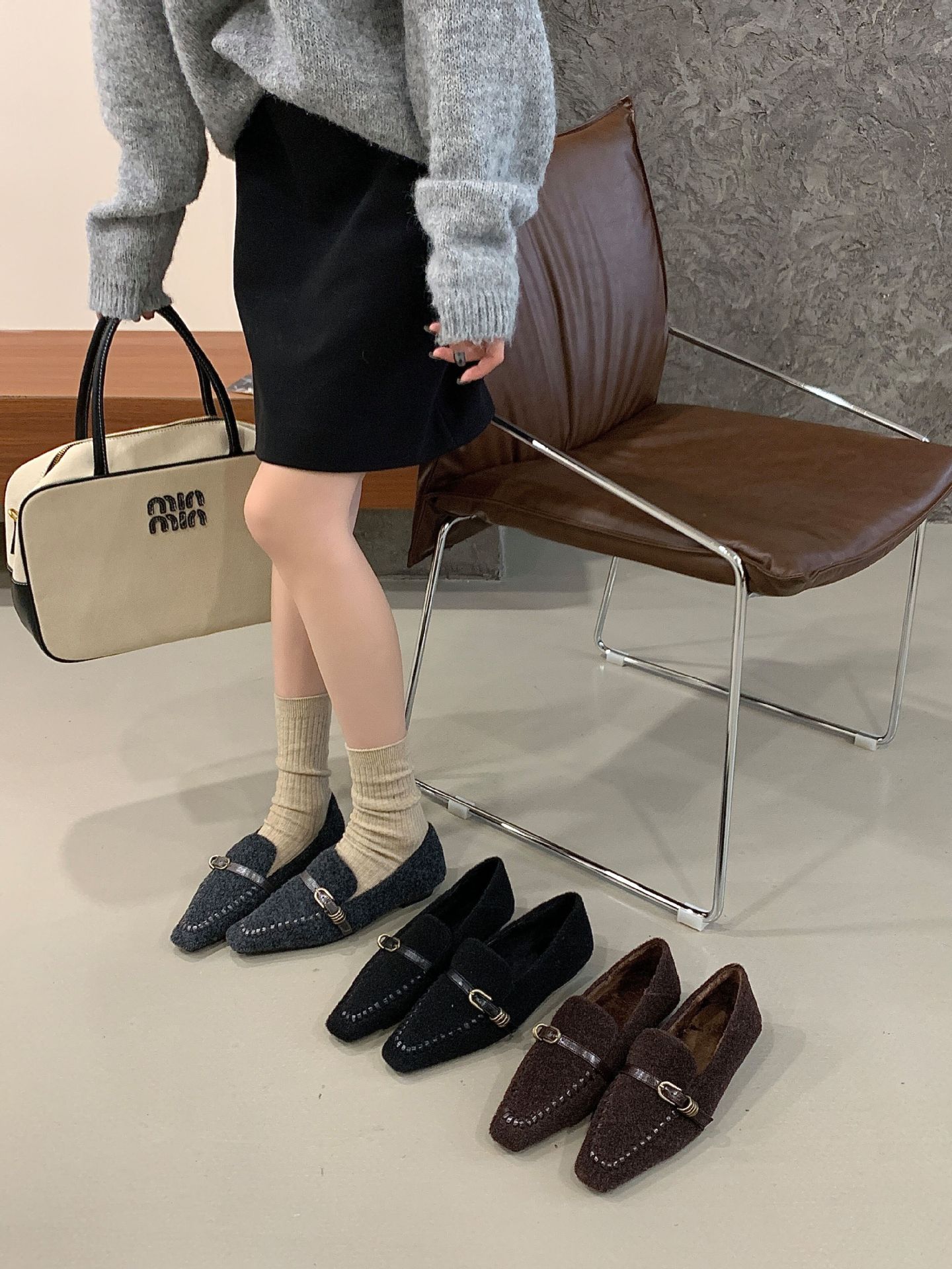 推荐理由:毛毛鞋适合当下季节穿着,面料干净舒适,内部加绒保暖又不失透气干净,一字带扣简约大气适合通勤工作时候穿着