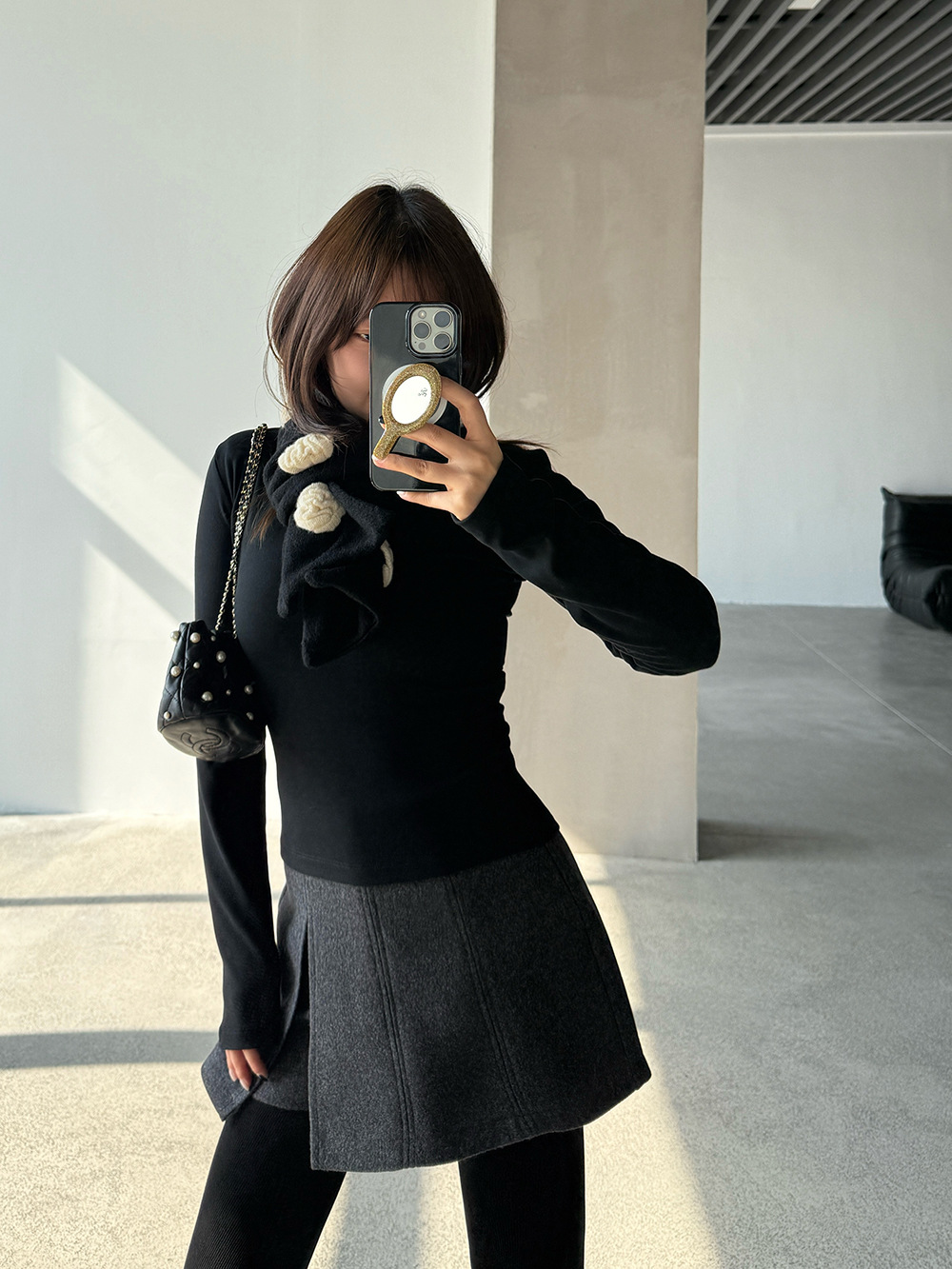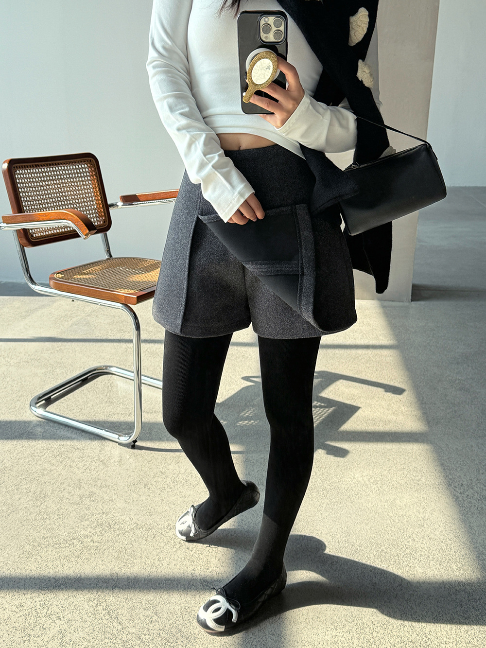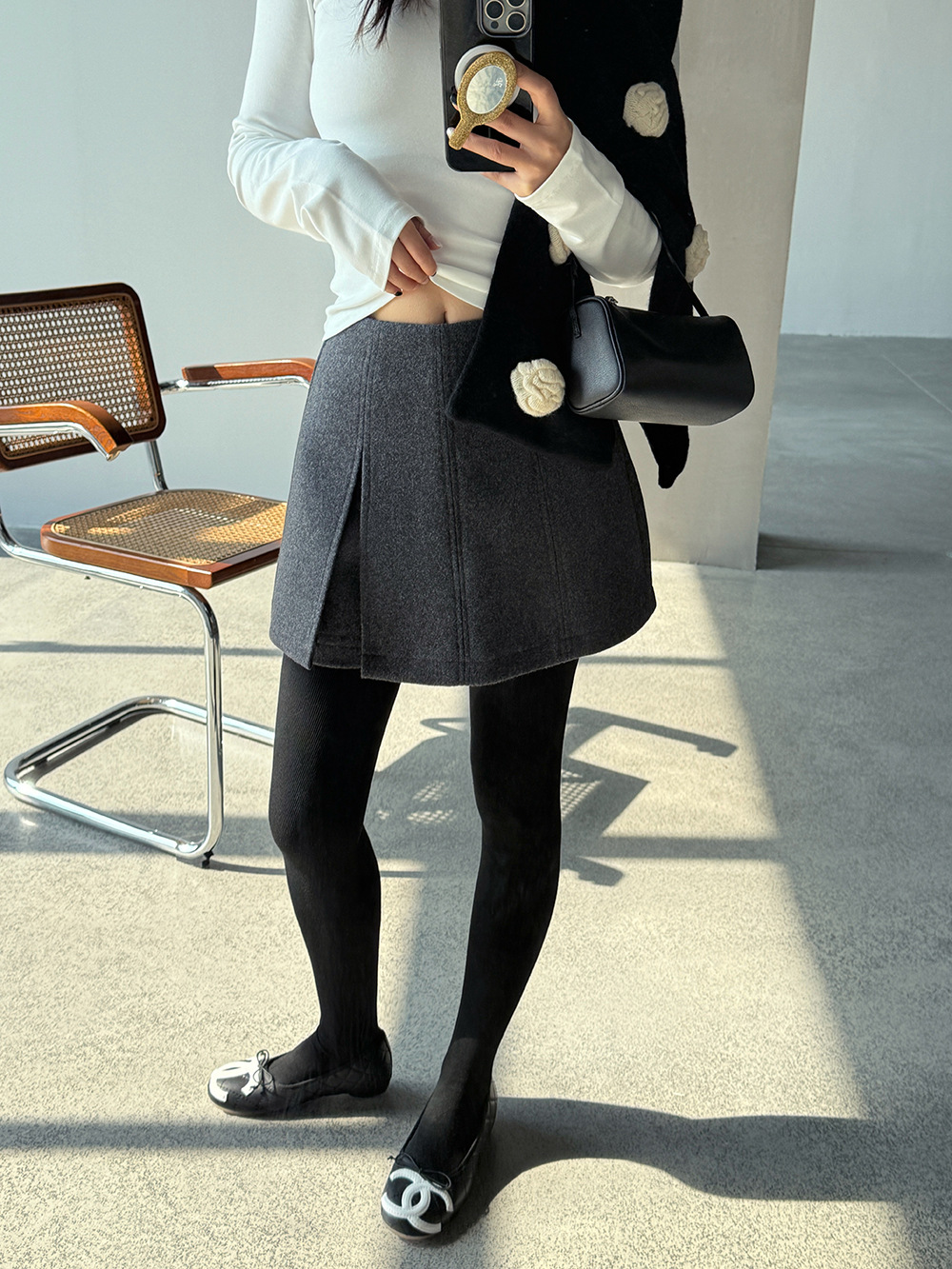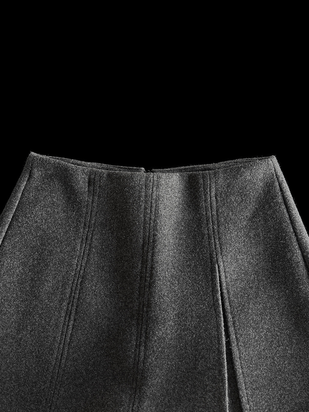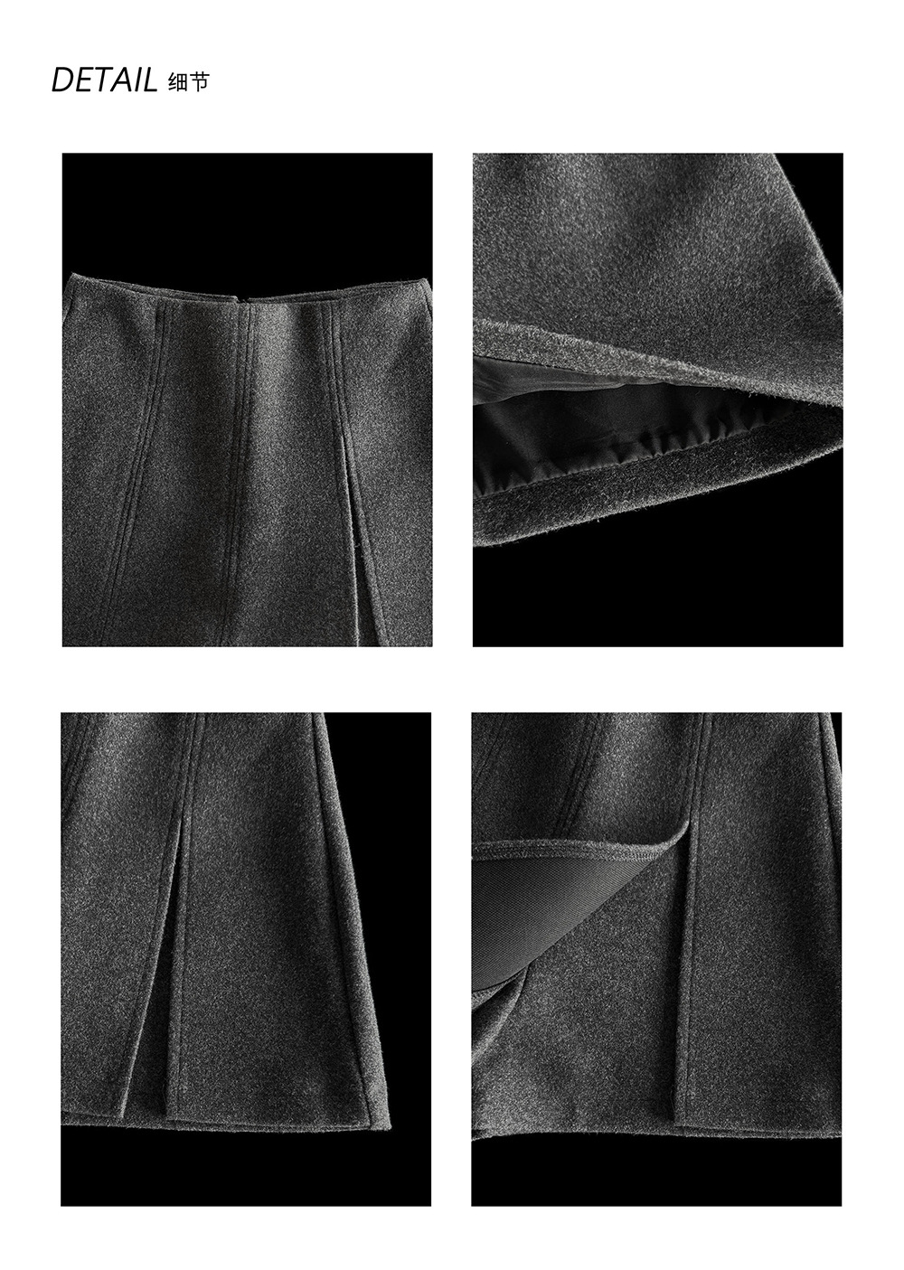 【王琪芝】羊毛高腰开叉加厚毛呢裙裤女韩版设计感A字半身裙WQ117