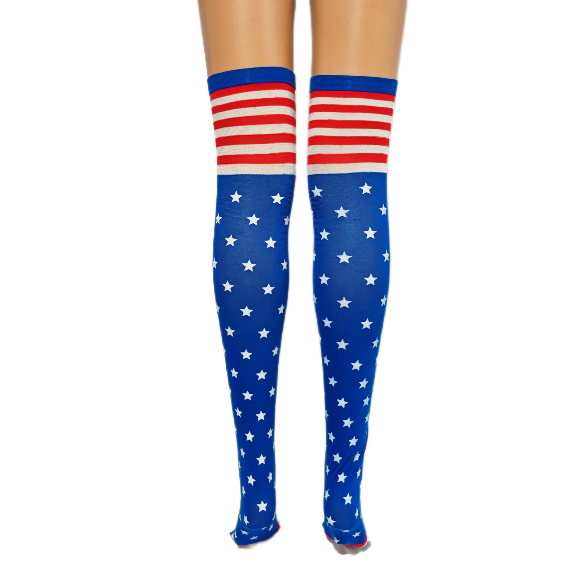 美国独立日长筒袜子节日庆典五角星国旗袜派对舞会表演配饰过膝袜