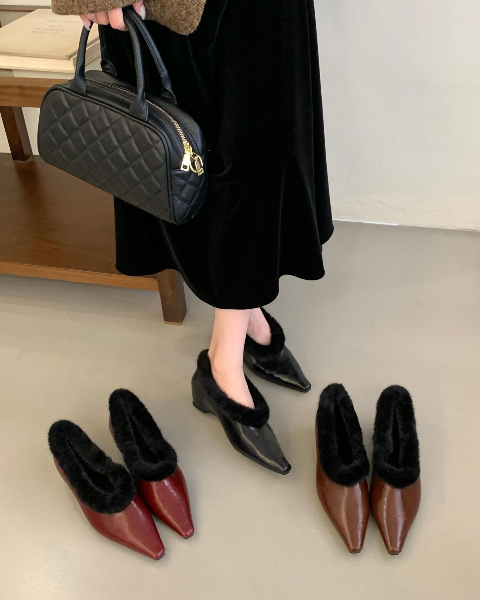 小方头坡跟皮面毛毛鞋2025新款冬季加绒保暖配裙玛丽珍鞋时尚毛鞋,批发价,价格:71,厂家直销,小方头坡跟皮面毛毛鞋2025新款冬季加绒保暖配裙玛丽珍鞋时尚毛鞋,免费拿样。