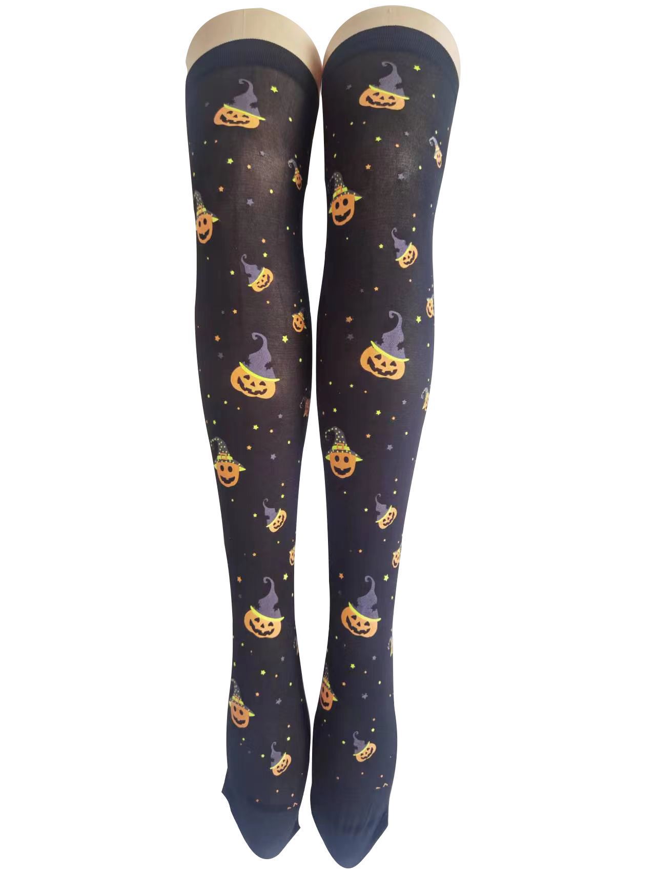 万圣节成人长筒袜 丝网印刷南瓜巫婆帽踩脚袜节日派服饰配件过膝