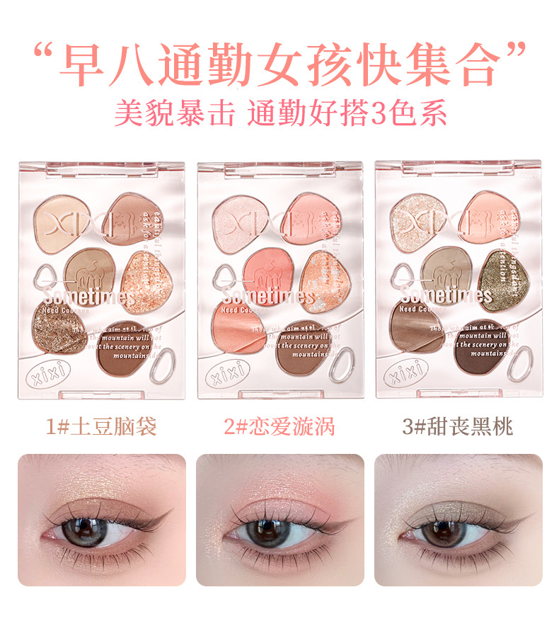 XIXI甜度加倍调色眼影盘低饱和六色大地色提亮珠光哑光学生款彩妆,批发价,价格:7.7,厂家直销,XIXI甜度加倍调色眼影盘低饱和六色大地色提亮珠光哑光学生款彩妆,免费拿样。