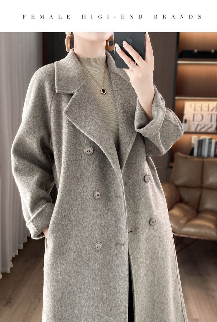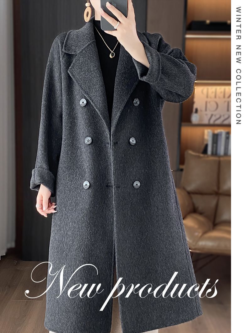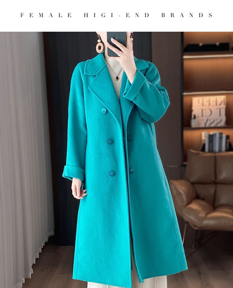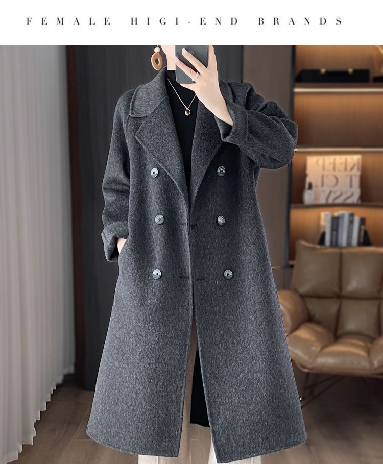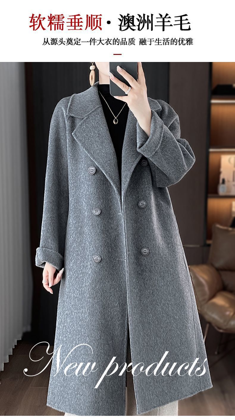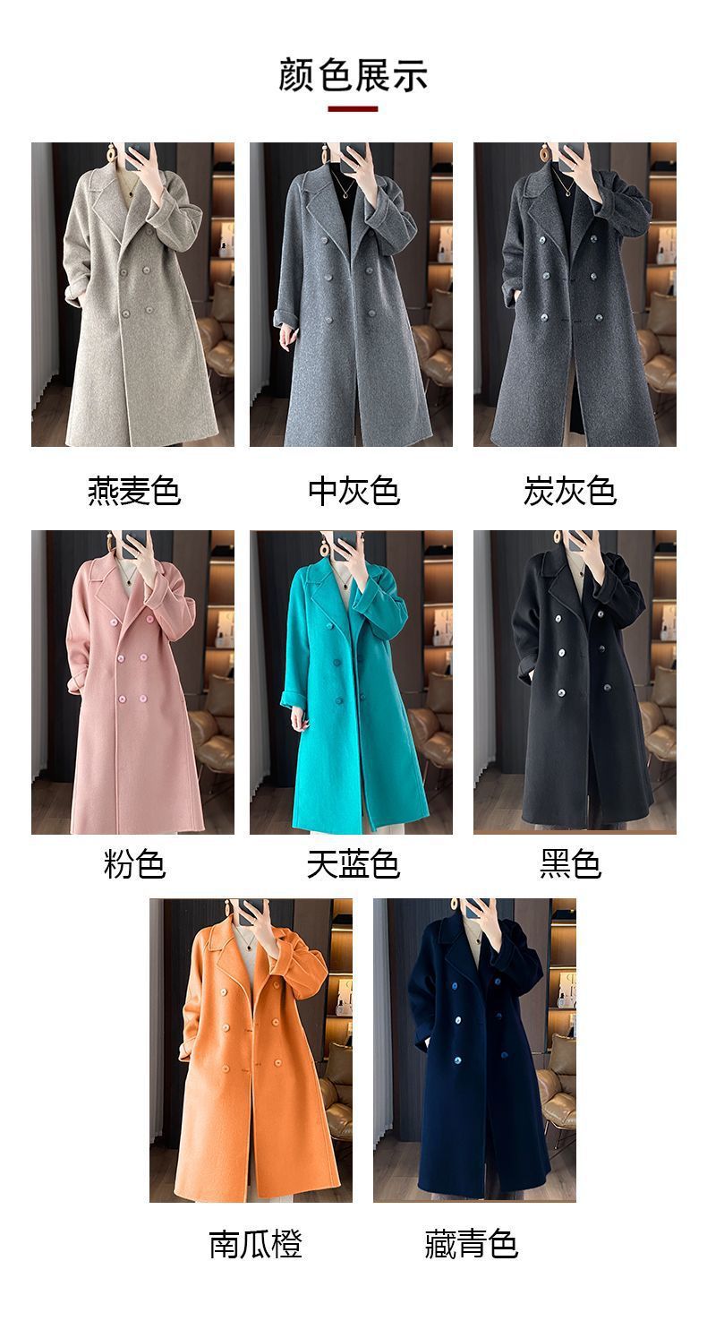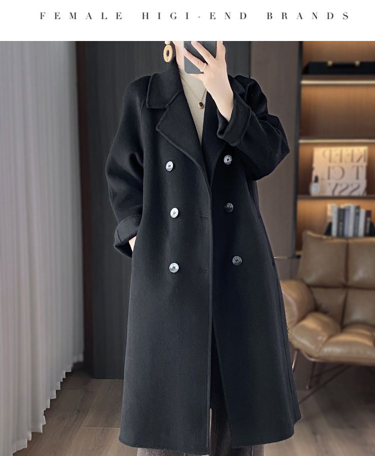 新款羊毛呢双面呢羊毛大衣女士高档双排扣长款秋冬季赫本风外套81
