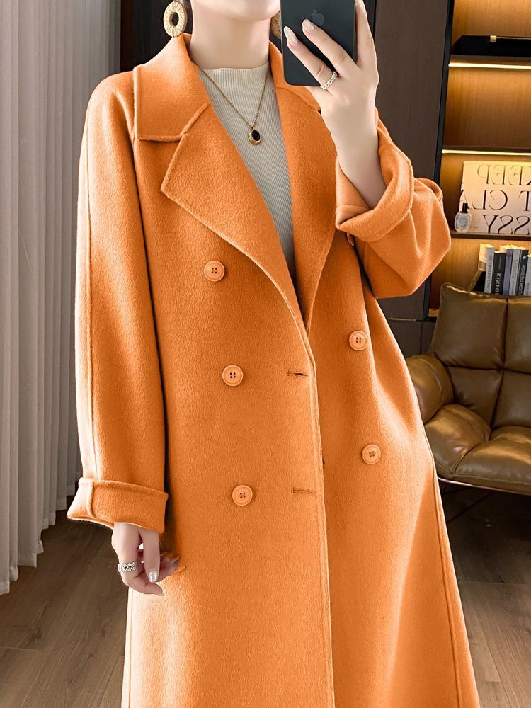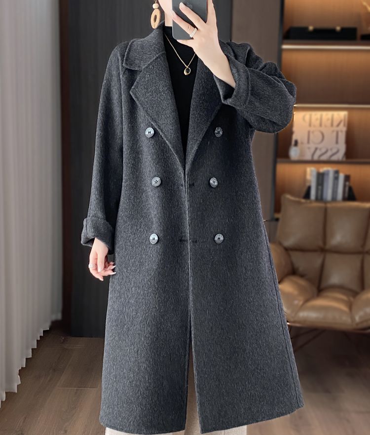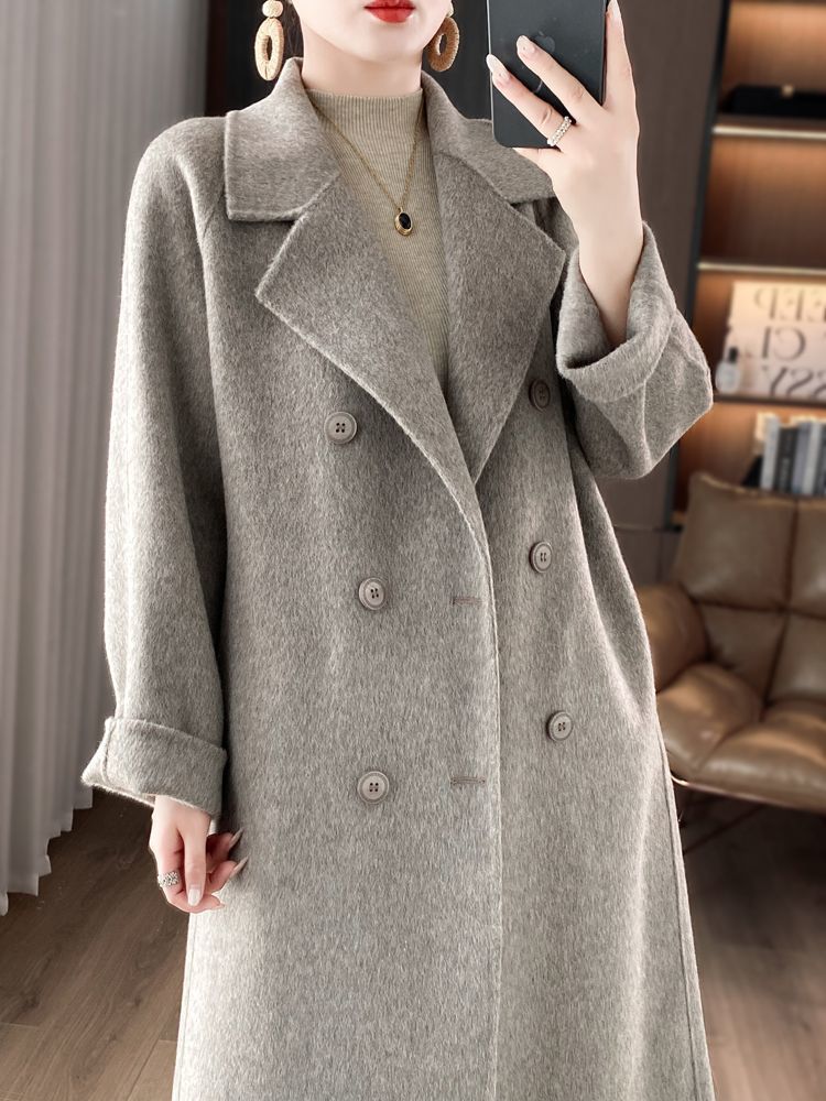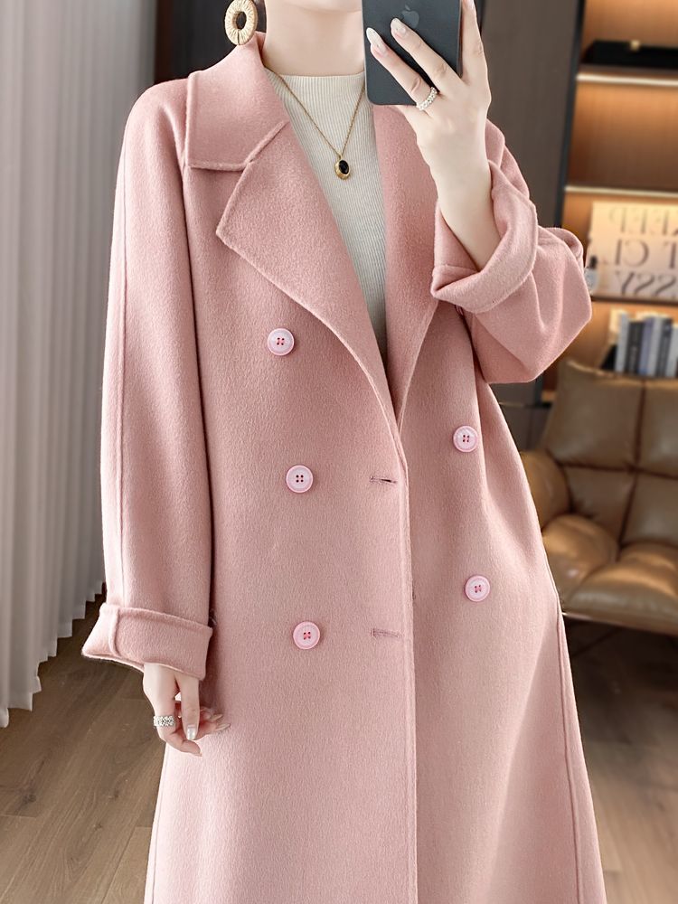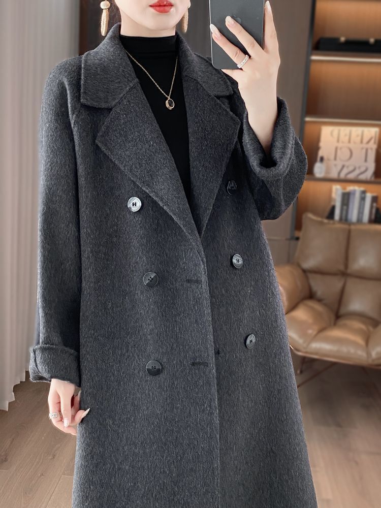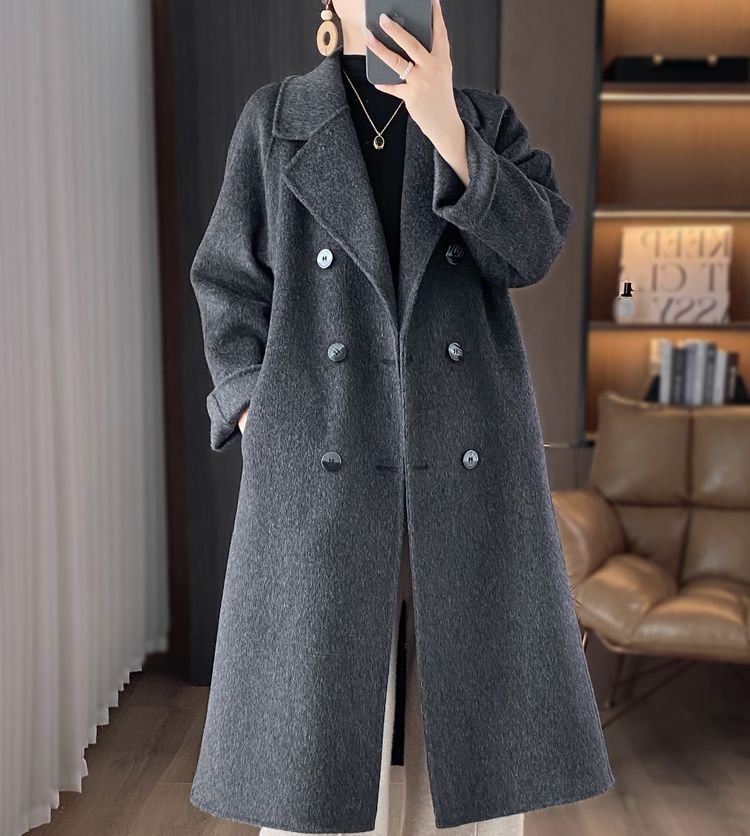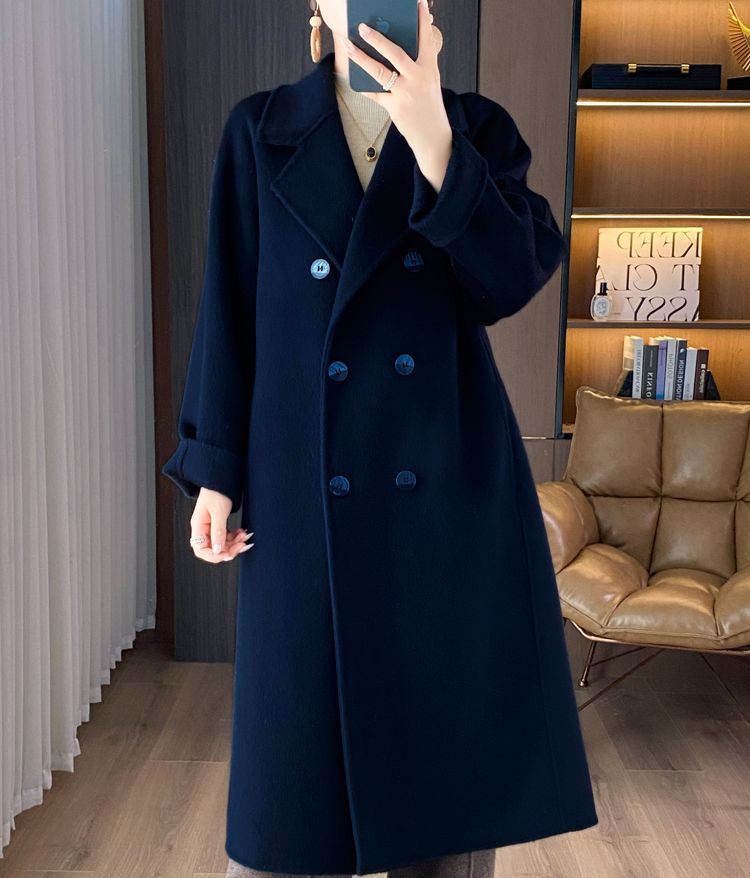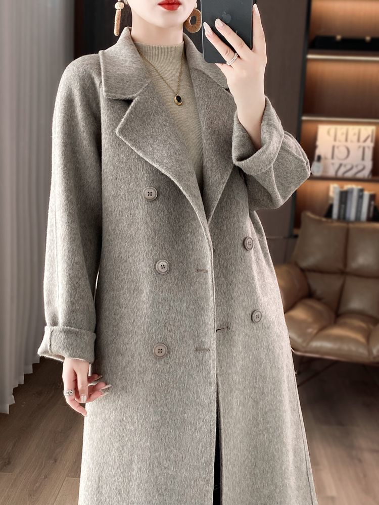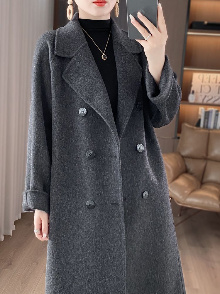 新款羊毛呢双面呢羊毛大衣女士高档双排扣长款秋冬季赫本风外套81