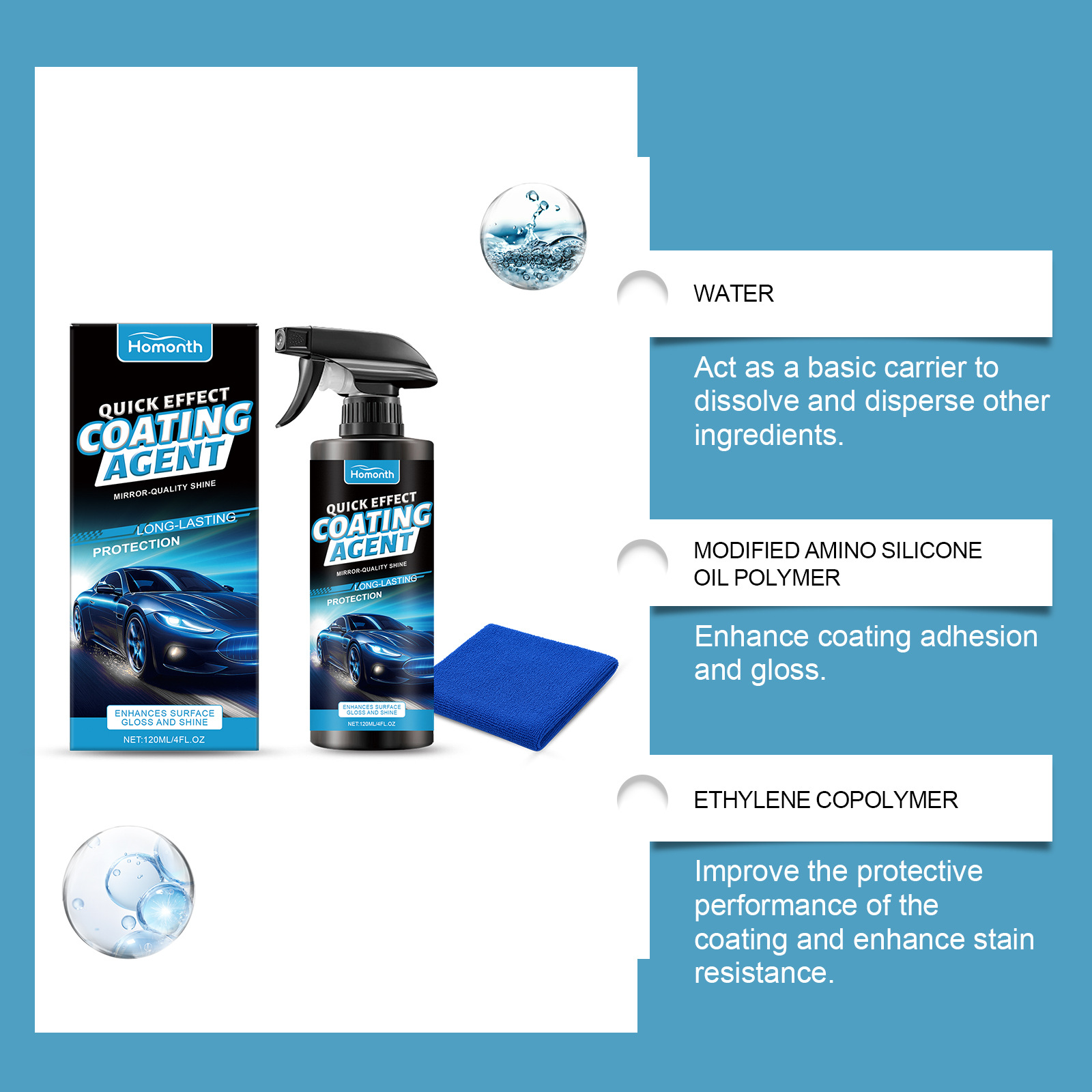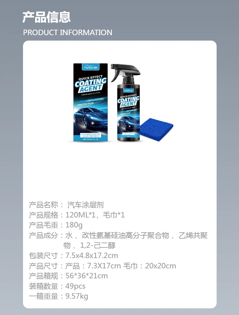 HOMONTH 汽车涂层剂 陶瓷涂层剂翻新剂汽车保护剂防褪色光泽材质