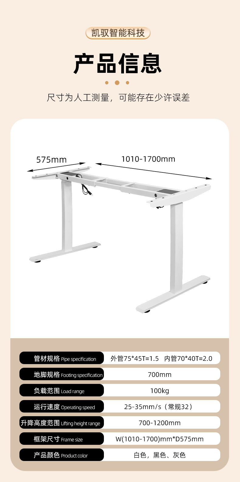 升降桌电动双电机双横梁可调节电脑桌站立式书桌学习桌电竞桌脚架
