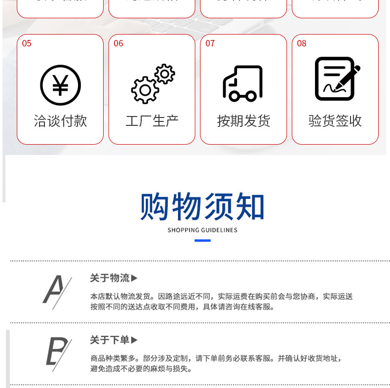 《付款途径:》确定订货的话需先付30%定金,待货品做好之后打余款,我厂发货;也可以看到货之后打钱提货,也可上门提货。我公司是阿里巴巴诚信会员可以通过支付宝付款也可通过网上银行直接转账汇款等!