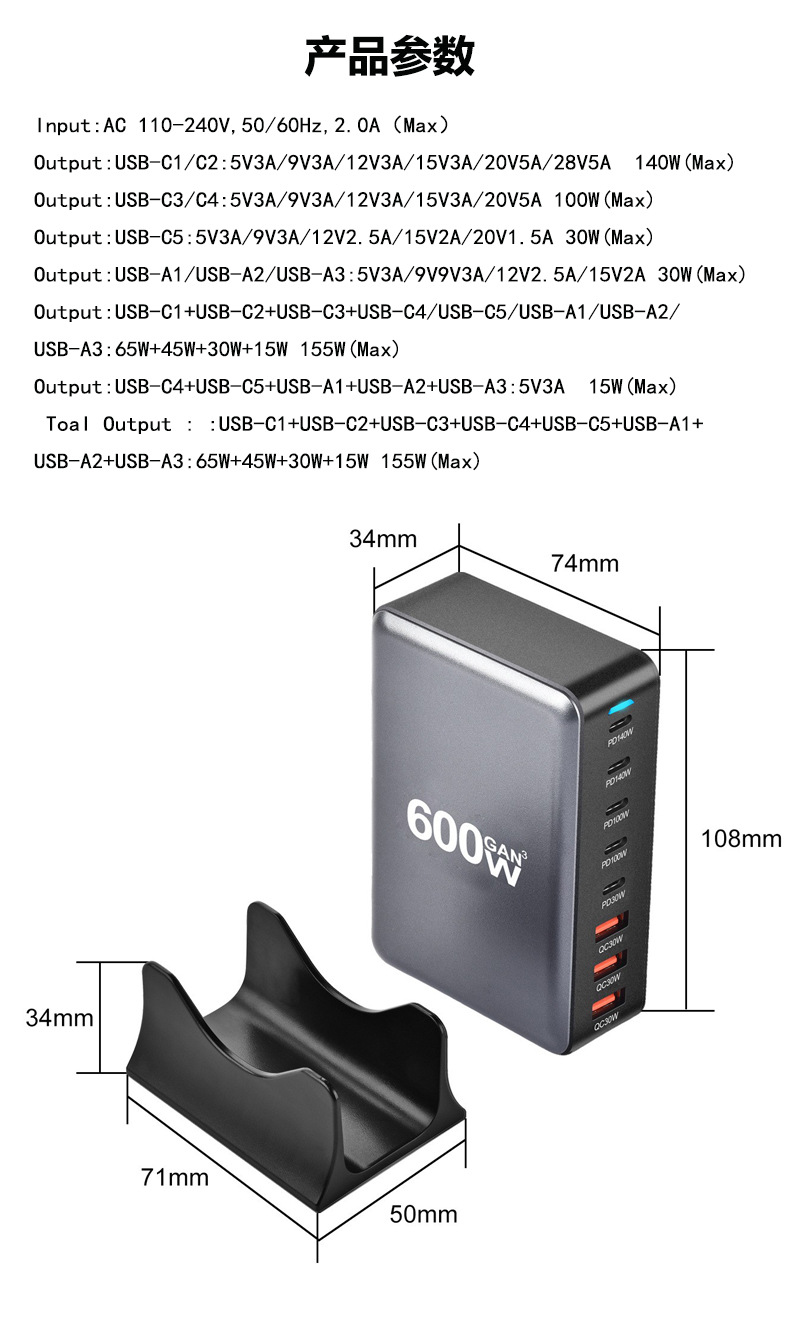 600W充电器 桌面充电器 氮化镓充电器 手机充电器