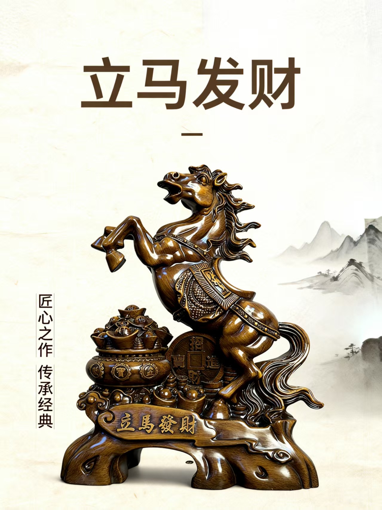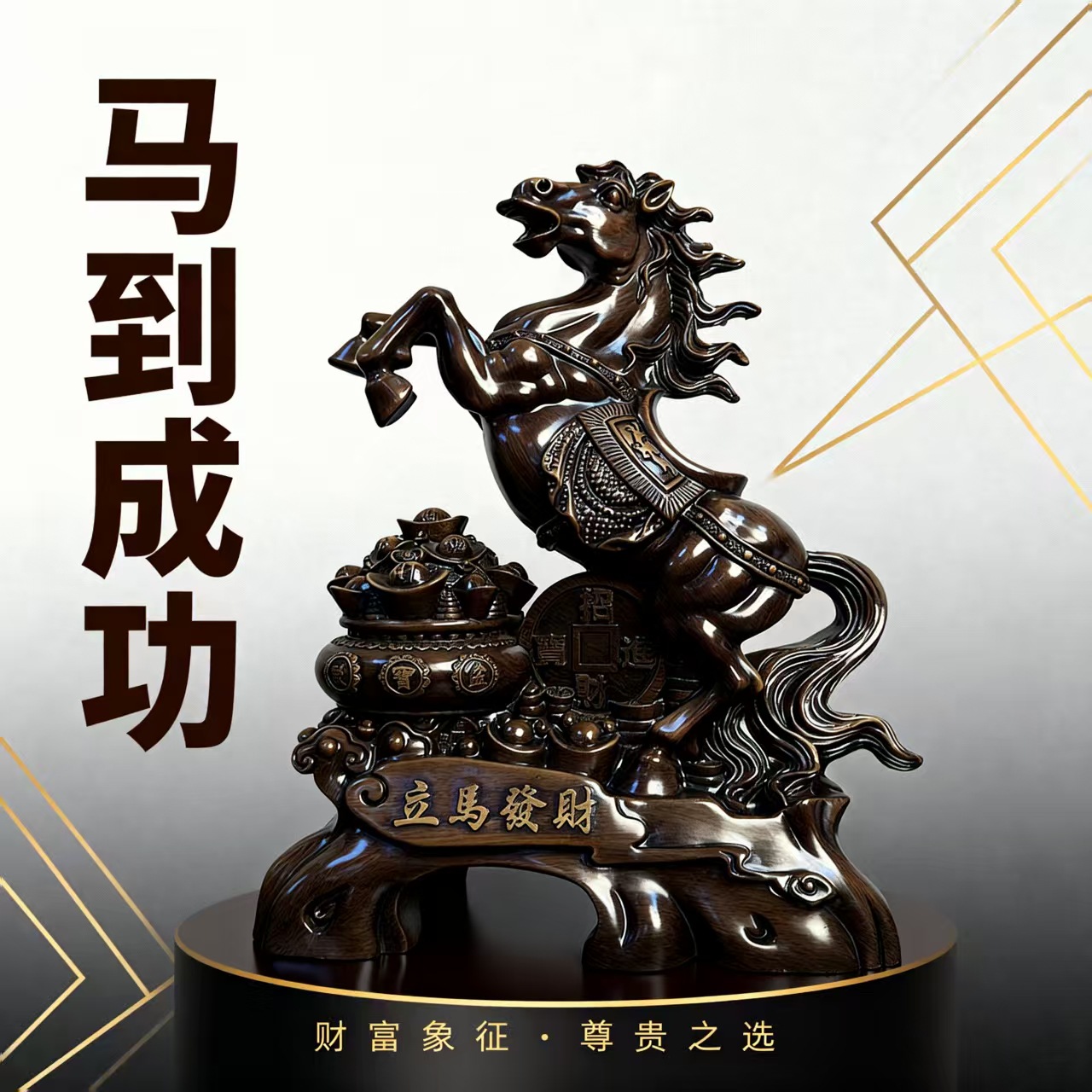 2026马年立马发财摆件客厅玄关电视酒开业送礼办公室装饰厂家直销