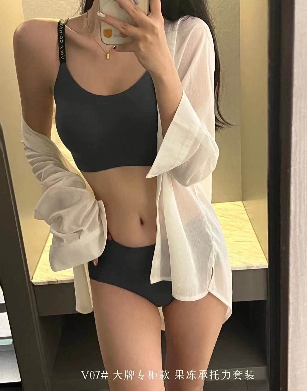 专柜果冻承托力套装女内衣英文肩带无痕裸感固定杯乳胶文胸女