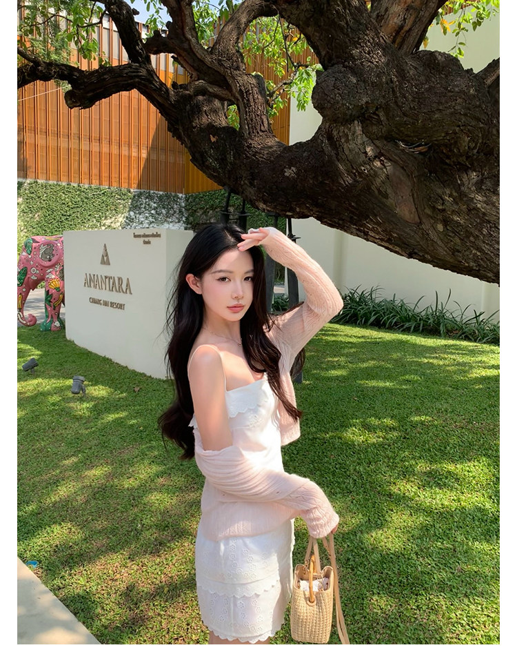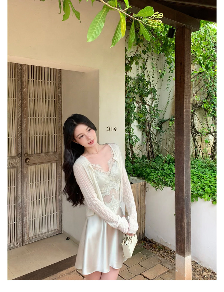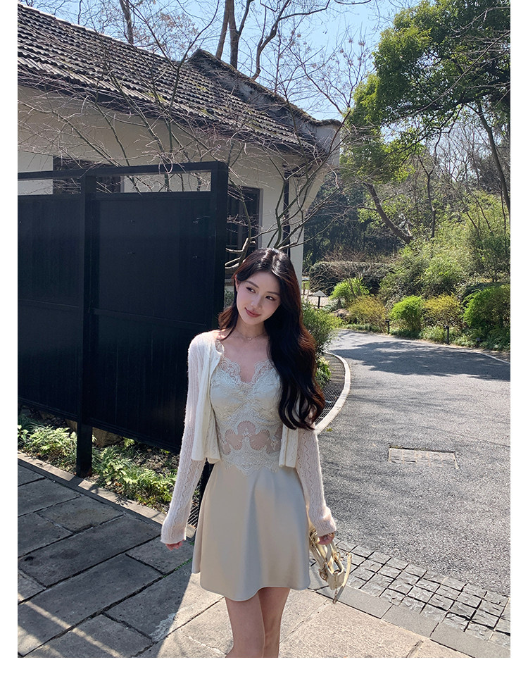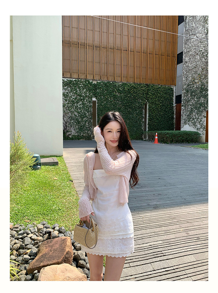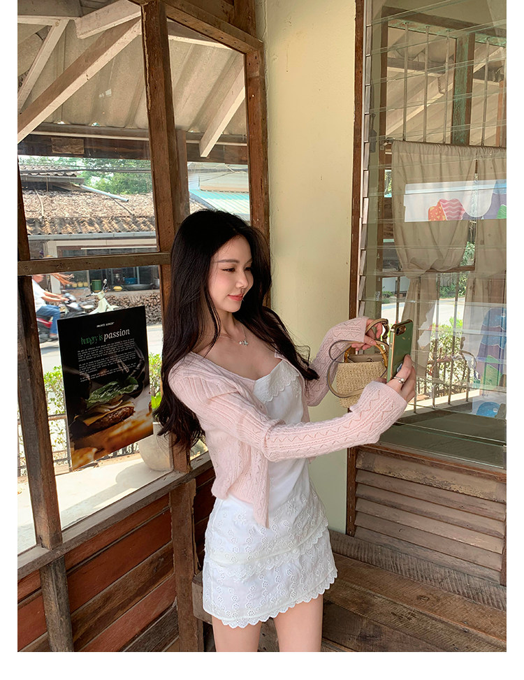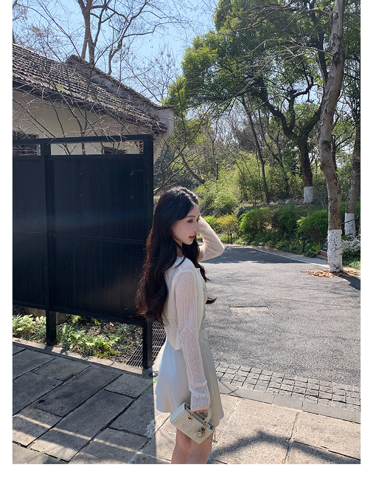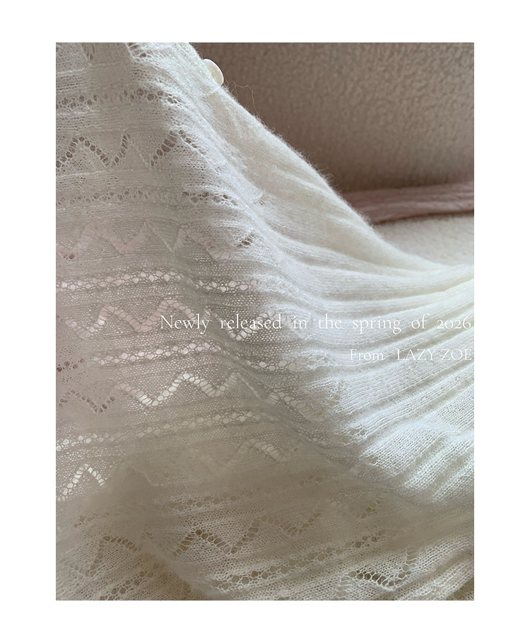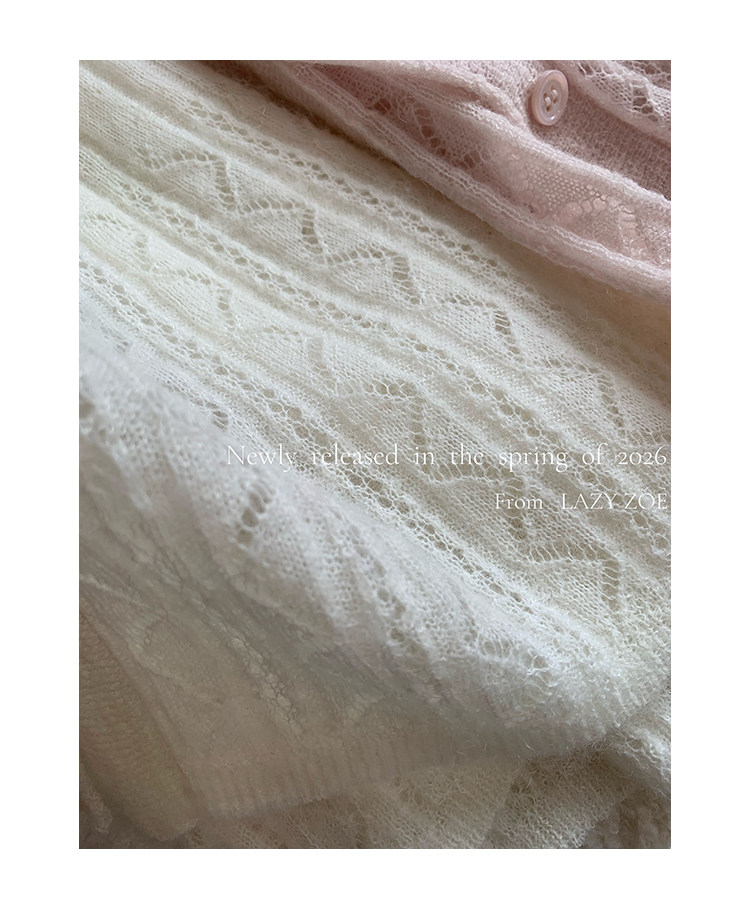 Lazy zoe 法式长袖短小开衫女士早春新气质显瘦薄针织衣