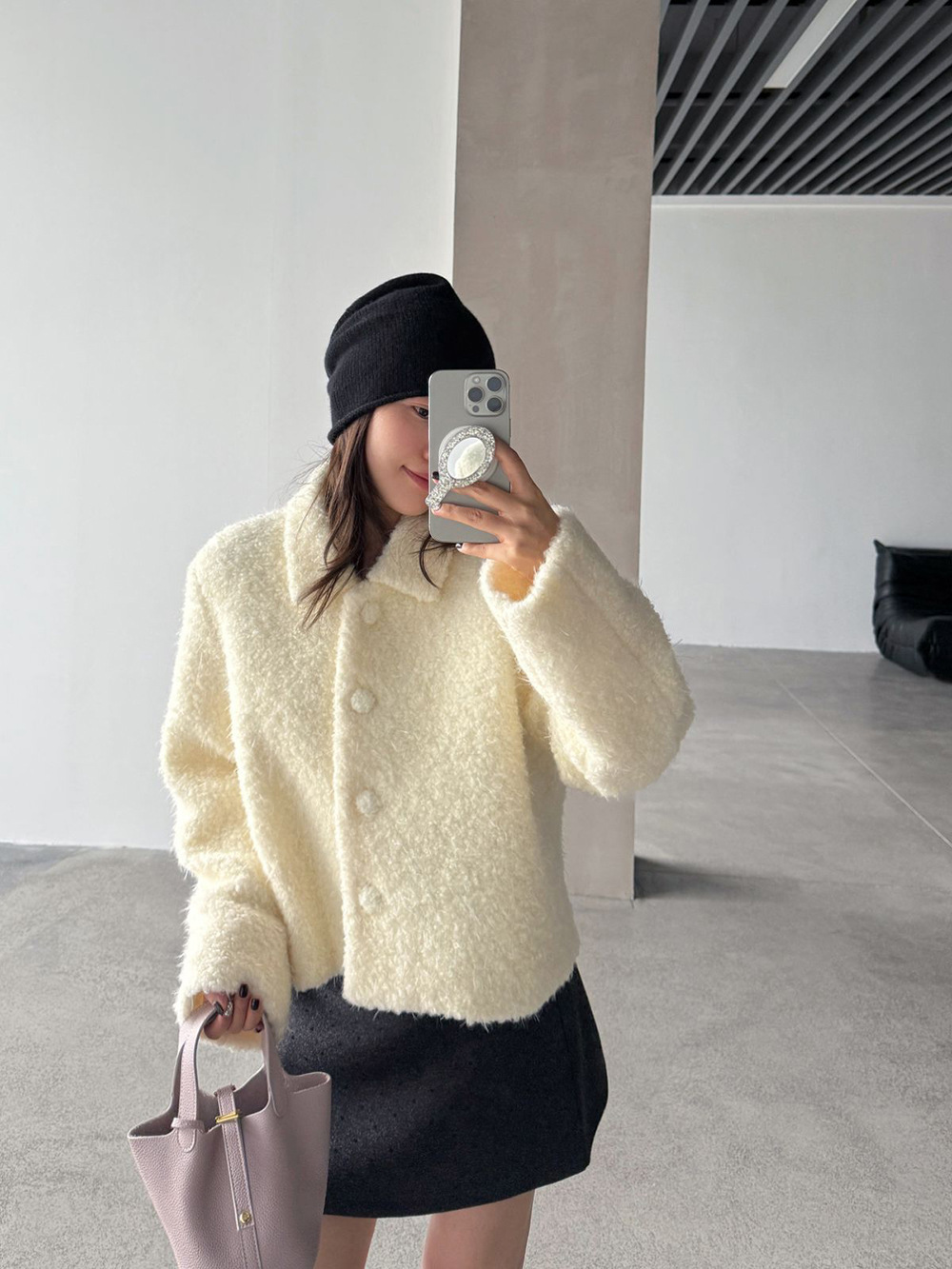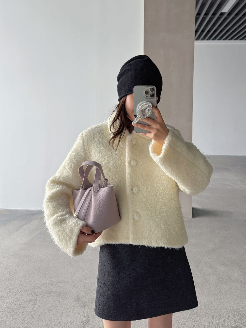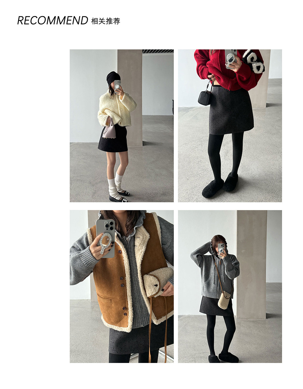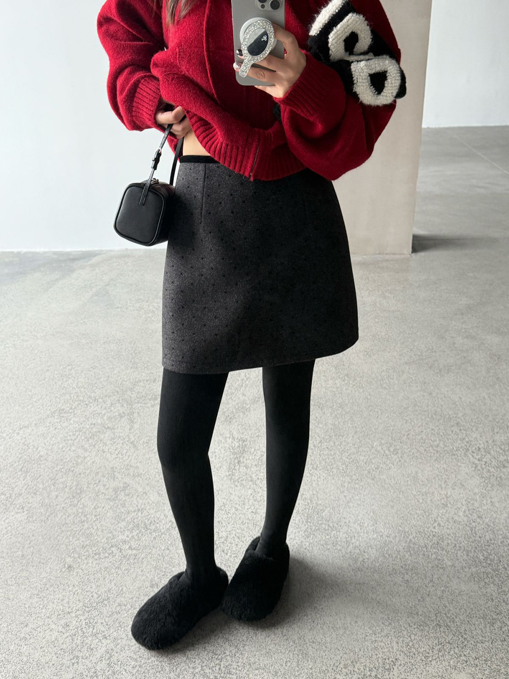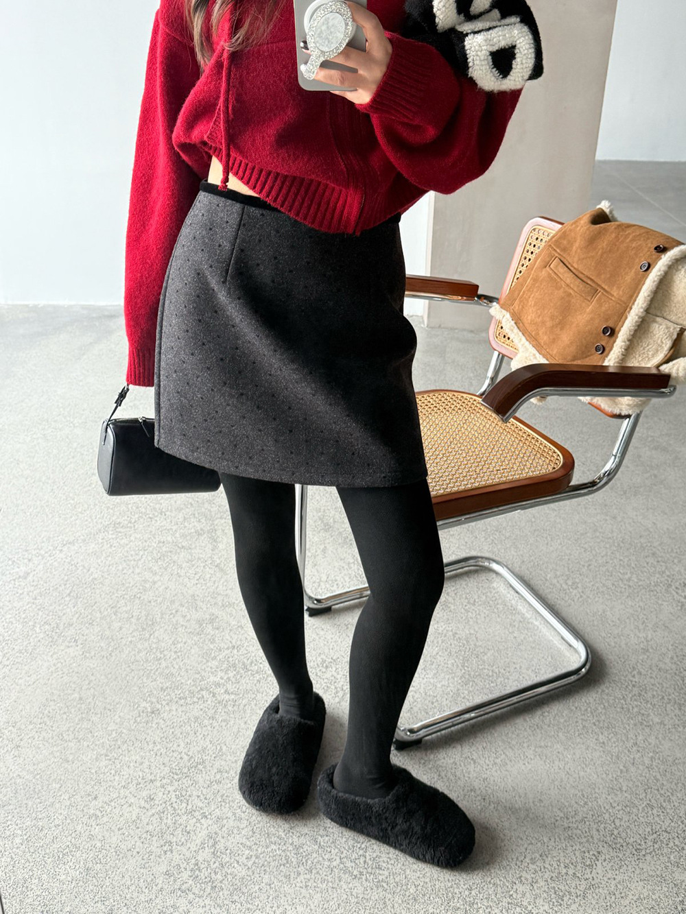 【王琪芝】波点呢料半身裙女冬小个子高腰显瘦a字包臂短裙子WQ069