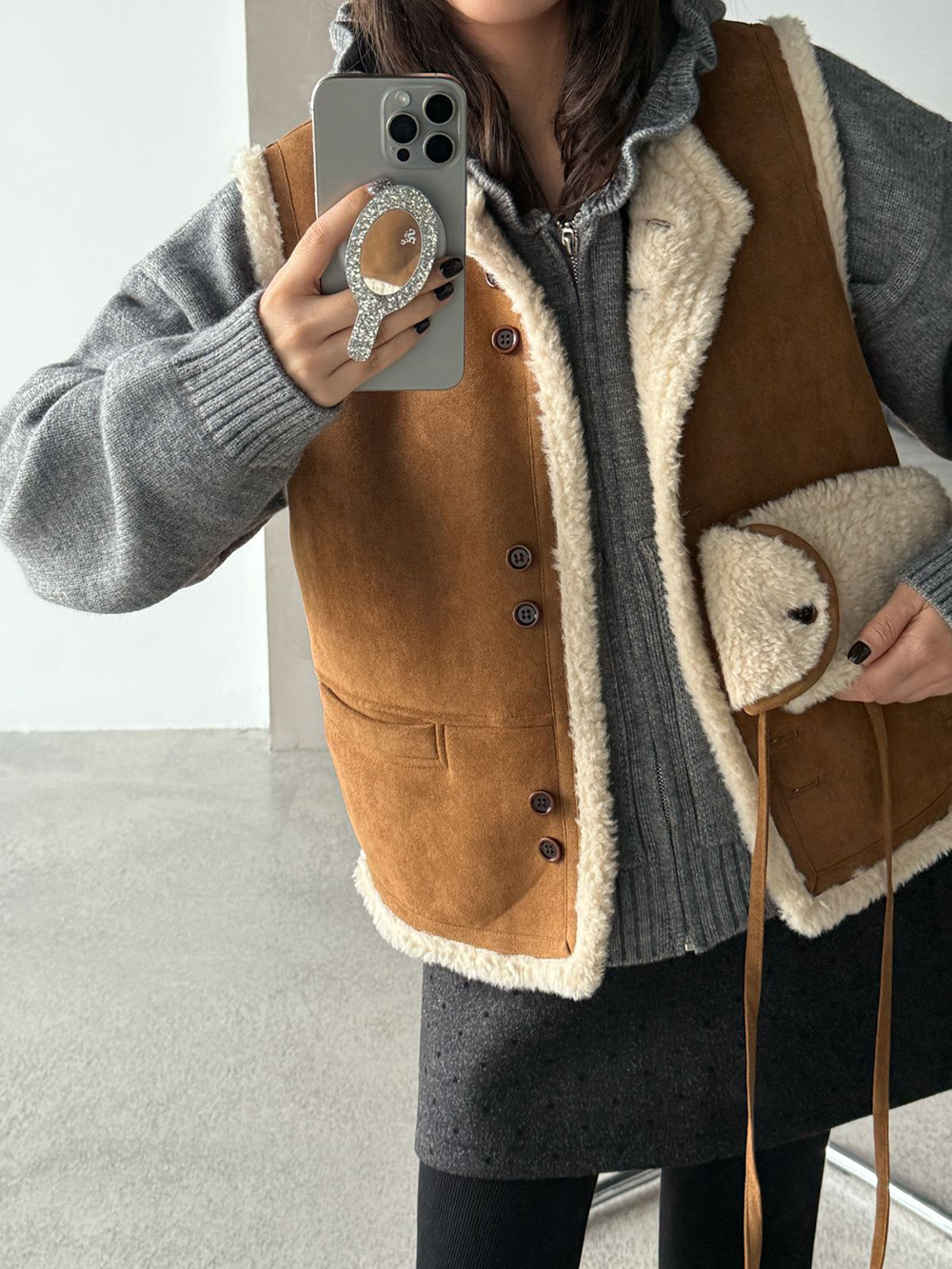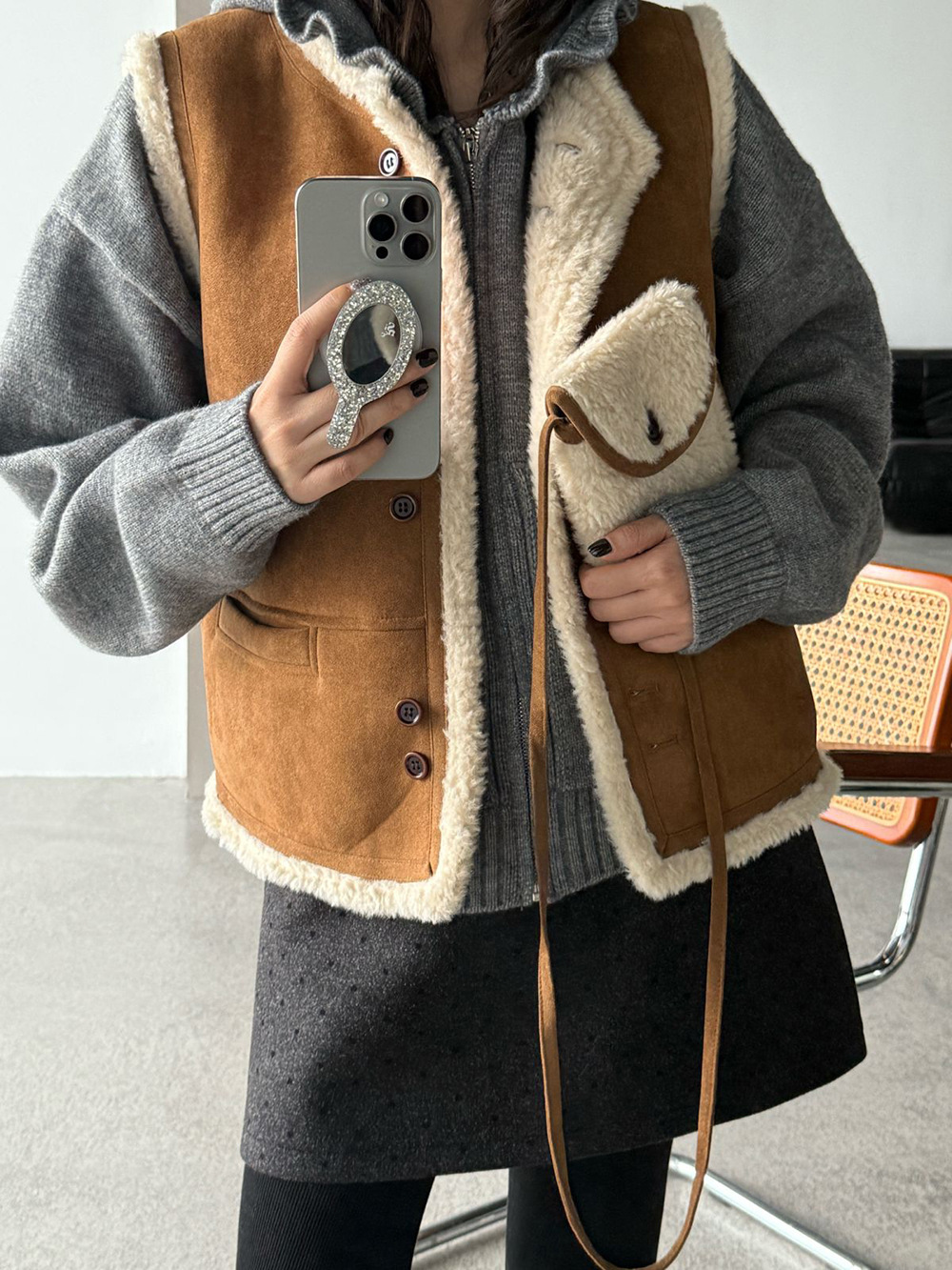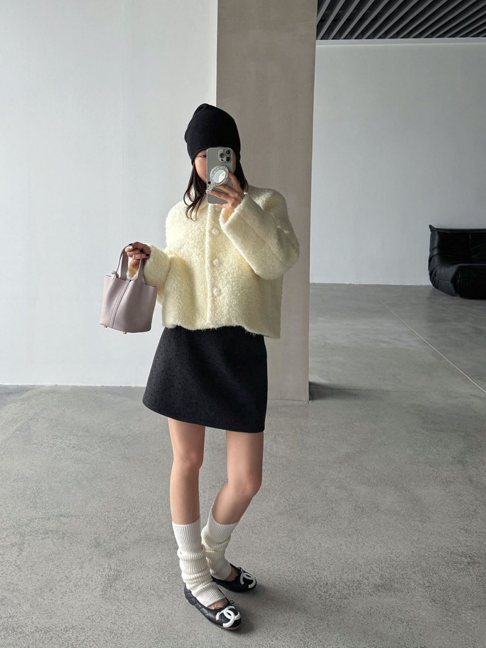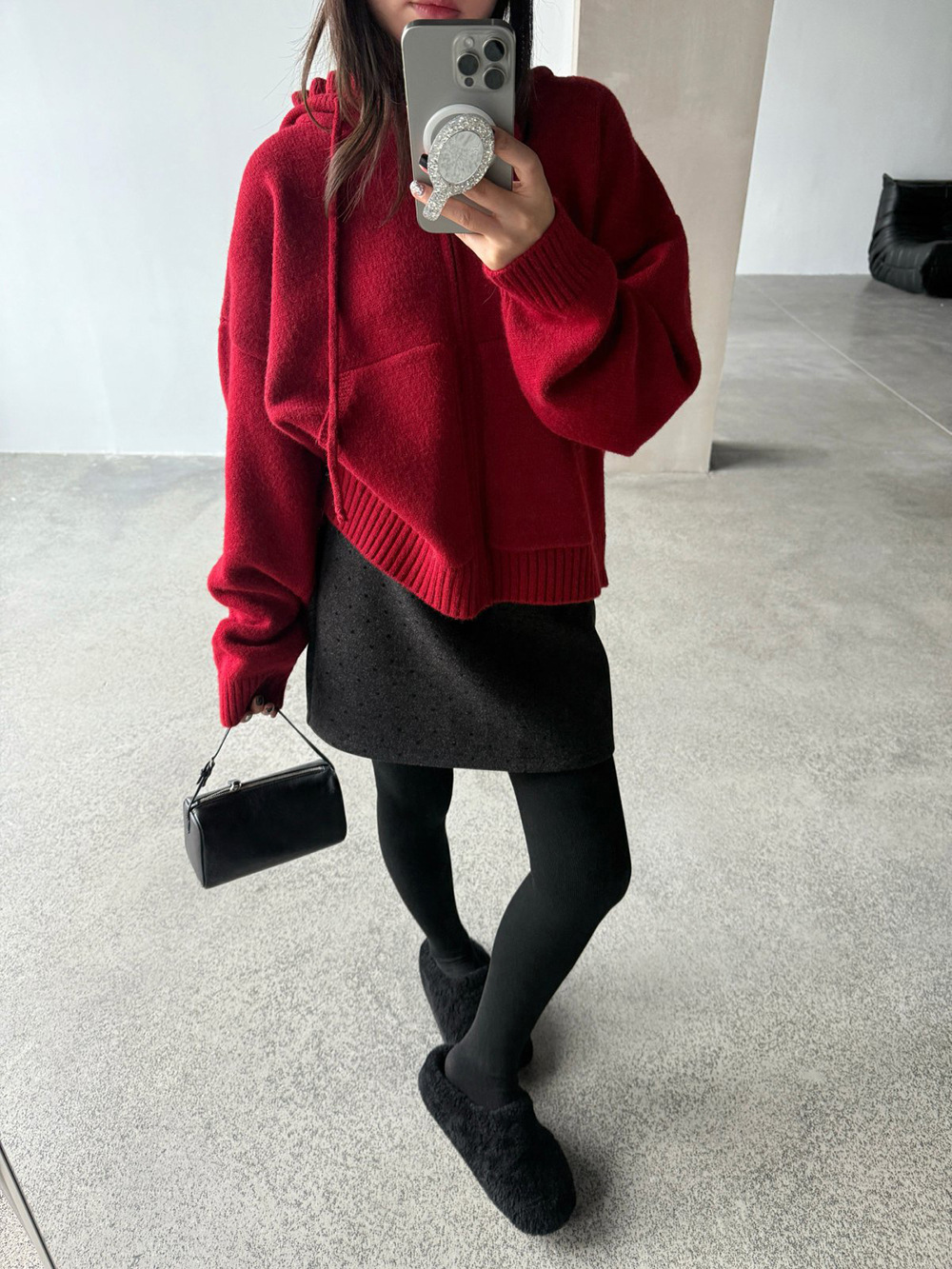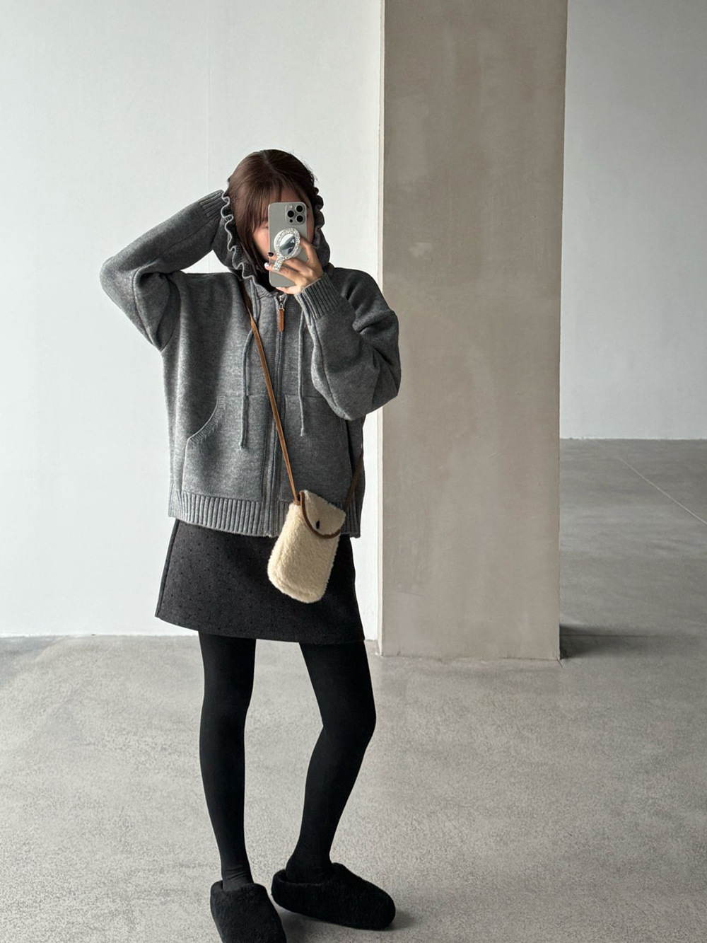【王琪芝】波点呢料半身裙女冬小个子高腰显瘦a字包臂短裙子WQ069