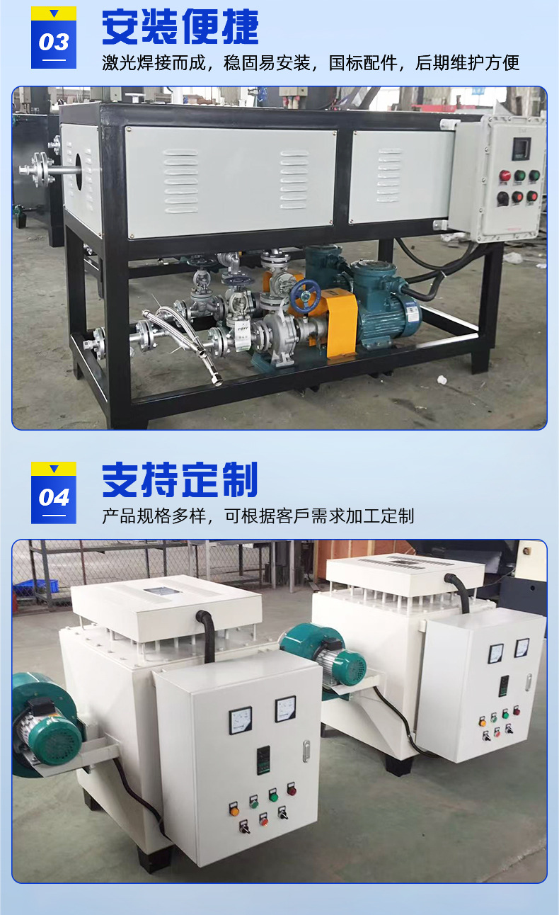 推荐理由:电加热导热油炉和反应釜无纺布电加热器广泛应用于化工、食品加工、医药制造及无纺布生产等行业。在无纺布生产过程中,对温度的稳定控制直接影响纤维的成形质量及后续工艺的顺利进行。导热油炉能够实现远程控制和批量