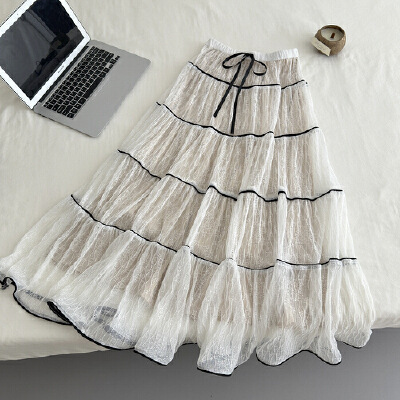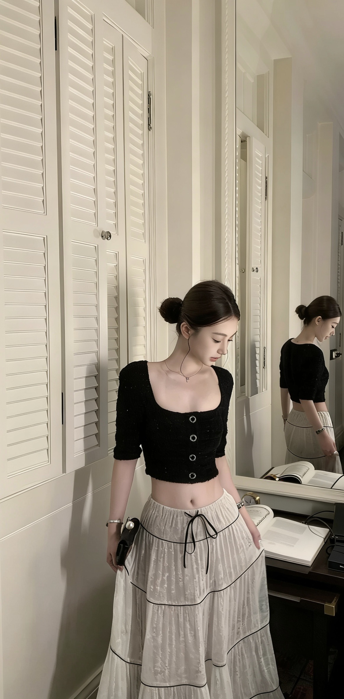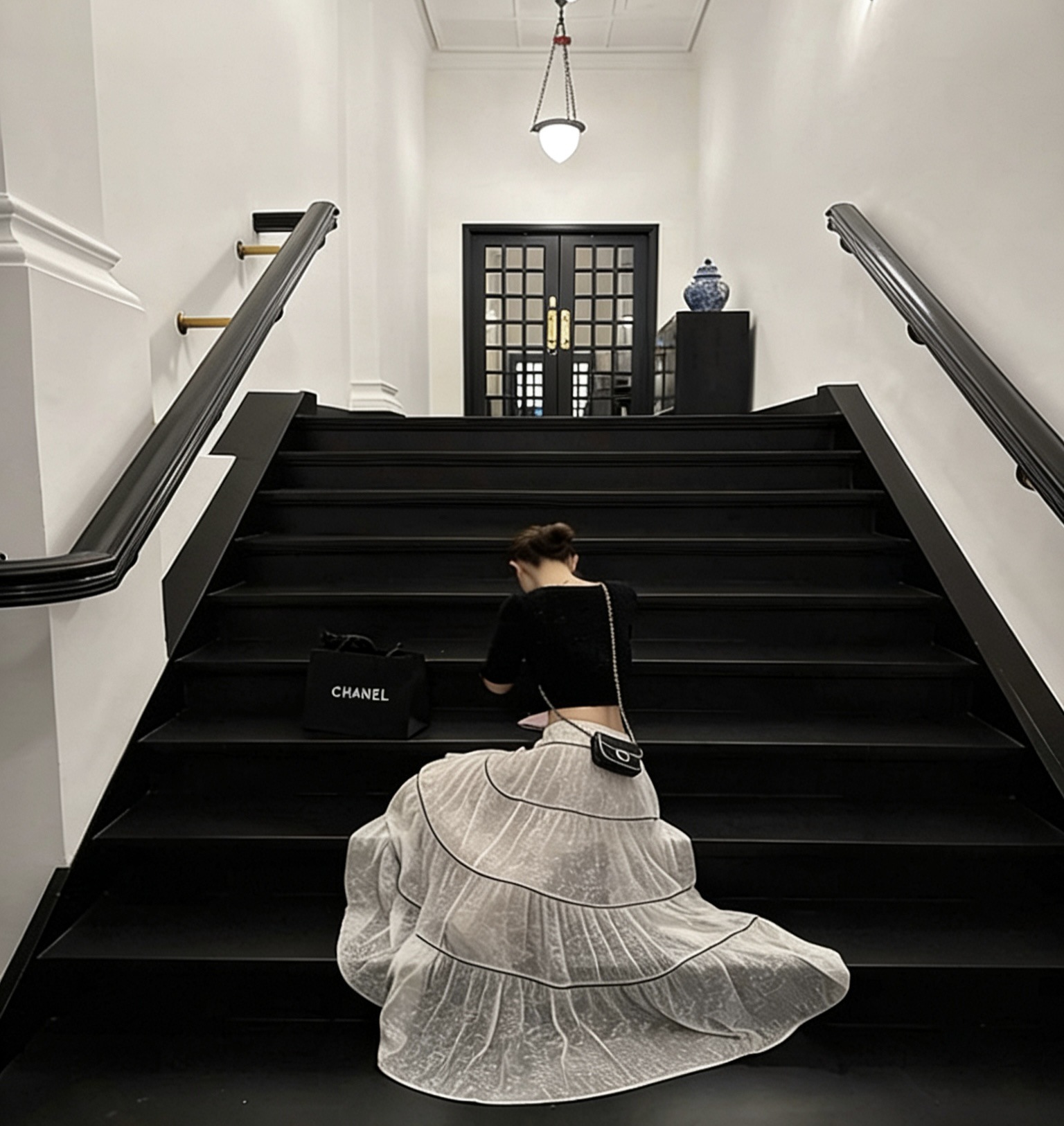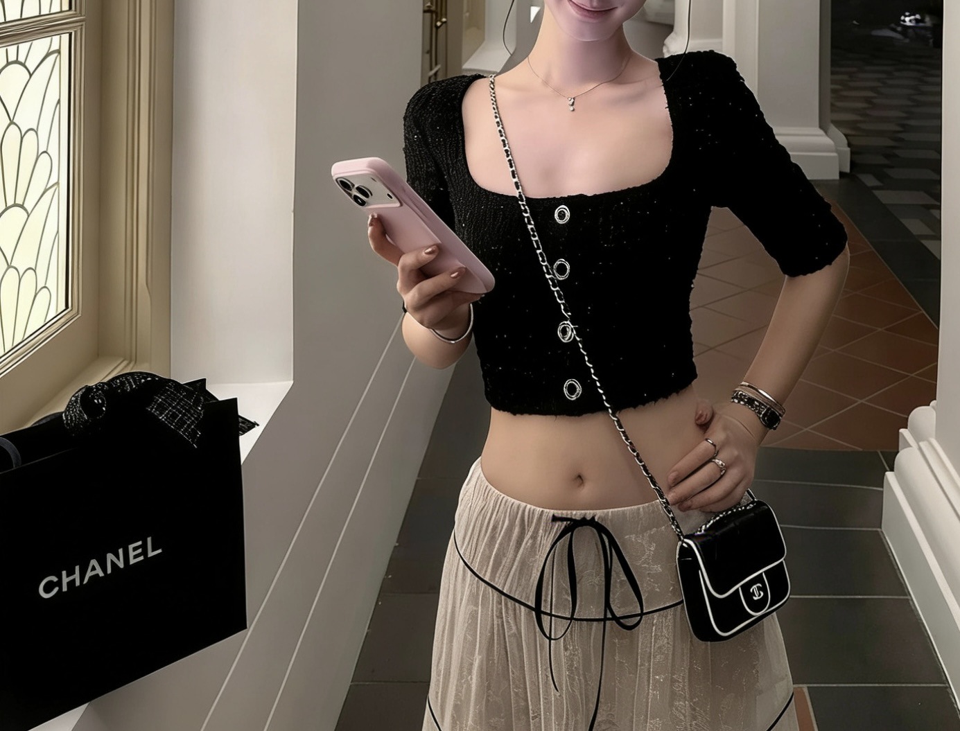 板栗可可Bankelili'黑曜石千金'小香风粗花呢短袖/蕾丝半身裙套装