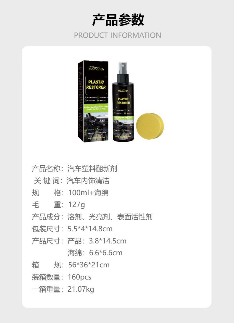 Homonth 汽车塑料翻新剂 汽车内饰座椅表盘清洁防尘去污镀膜剂