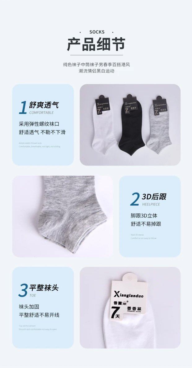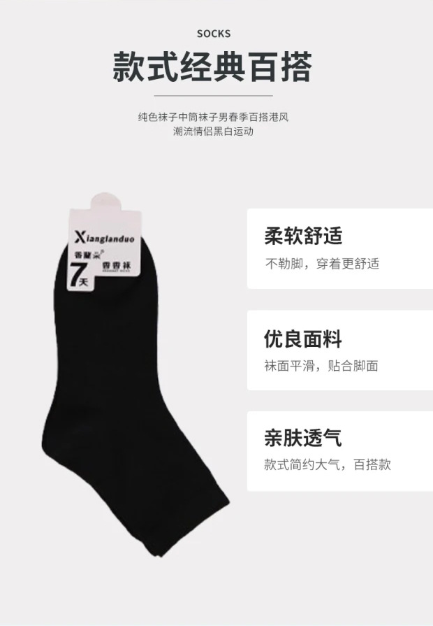 春夏薄款 棉男士短筒中筒袜时尚百搭吸汗透气 休闲运动袜