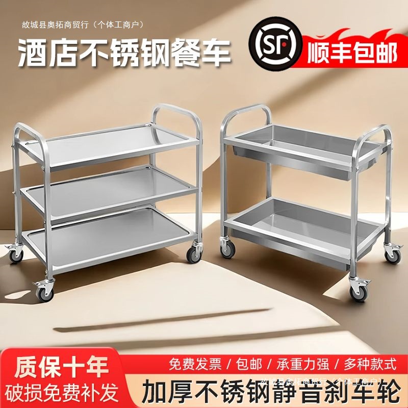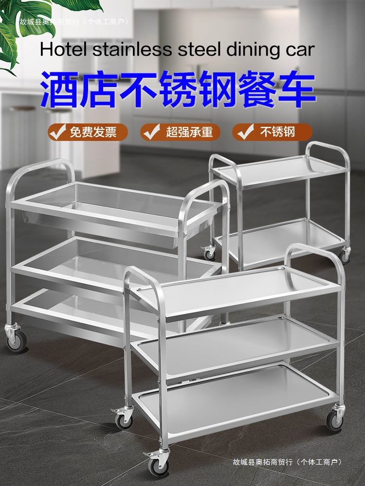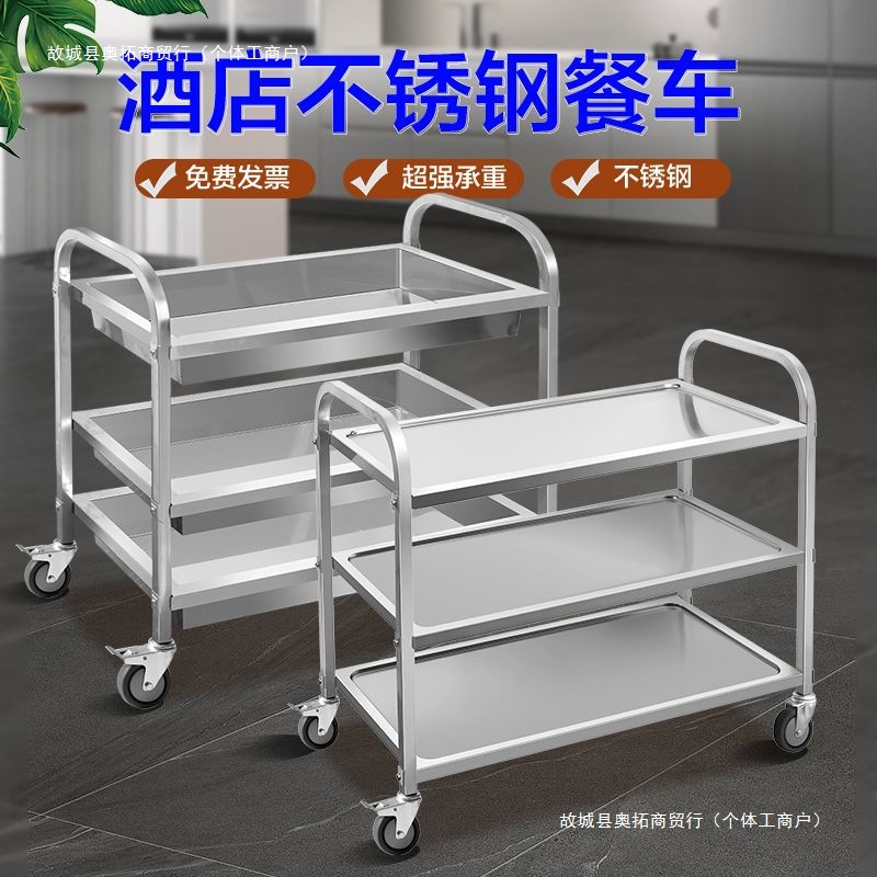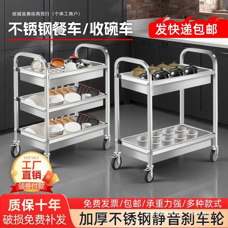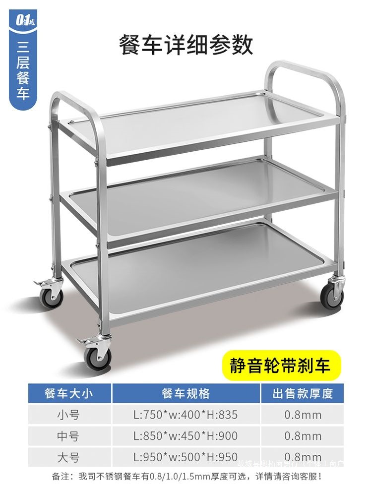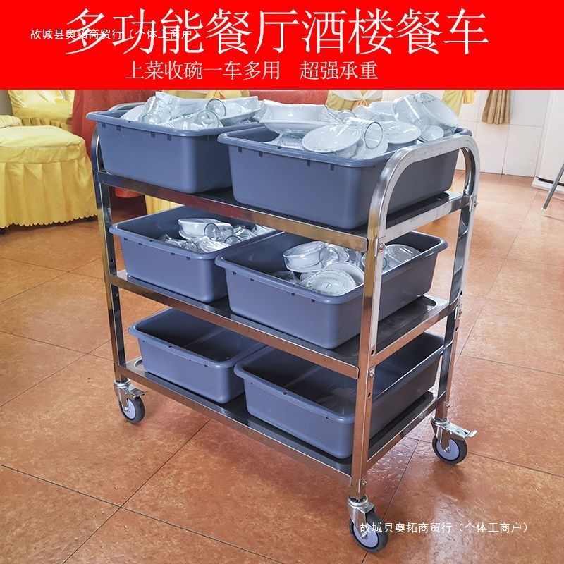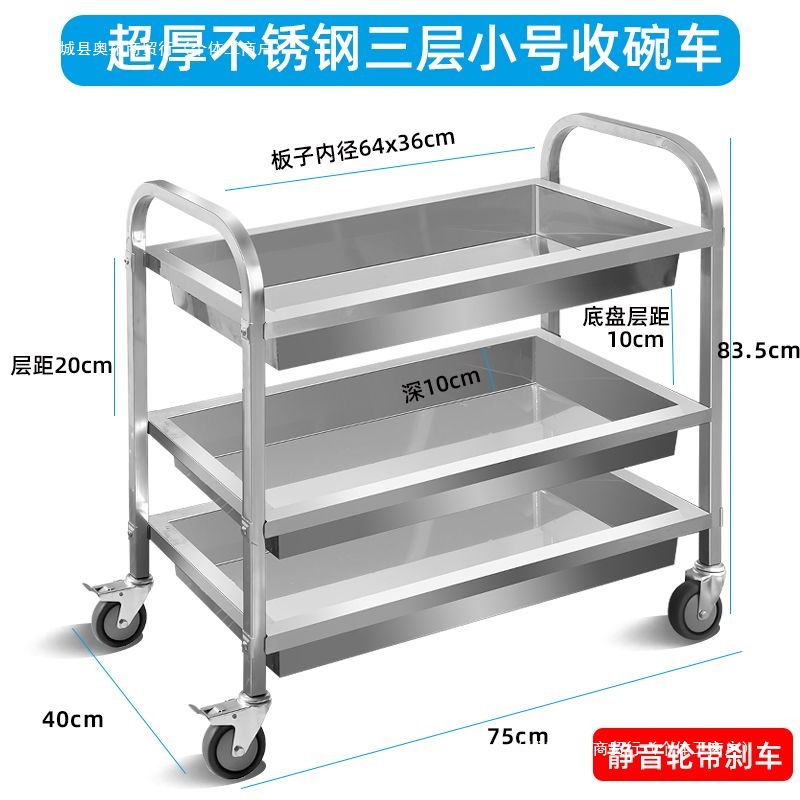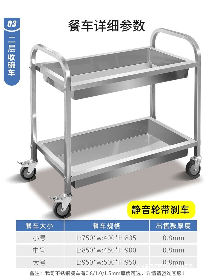 移动不锈钢餐车三层小推车商用收餐车收碗车餐厅送餐车饭堂摆摊车