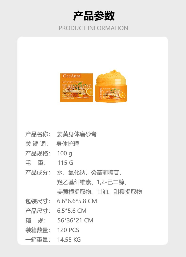 OCEAURA 姜黄身体磨砂膏 蕴含甜橙精华补水保湿易吸收清爽不粘腻,批发价,价格:8,厂家直销,OCEAURA 姜黄身体磨砂膏 蕴含甜橙精华补水保湿易吸收清爽不粘腻,免费拿样。