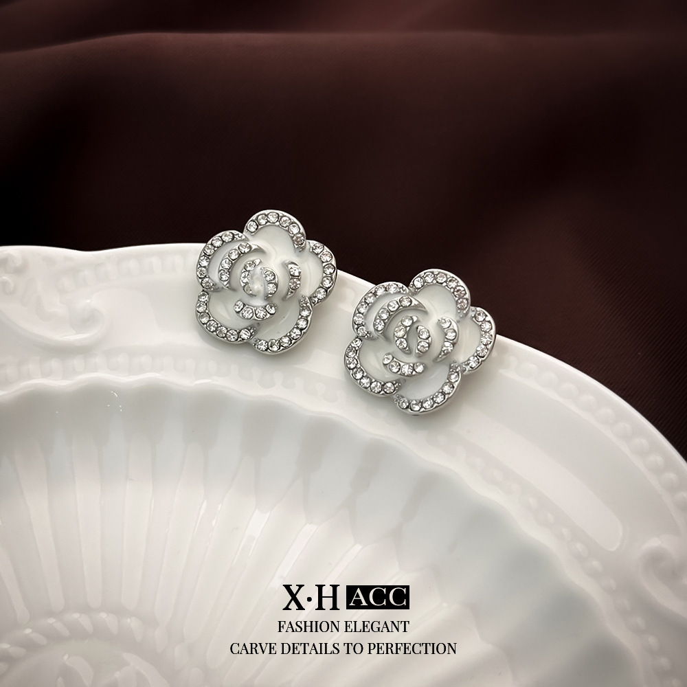 银针镶钻滴油玫瑰花耳钉韩国网红气质时尚轻奢耳环高级感耳饰批发