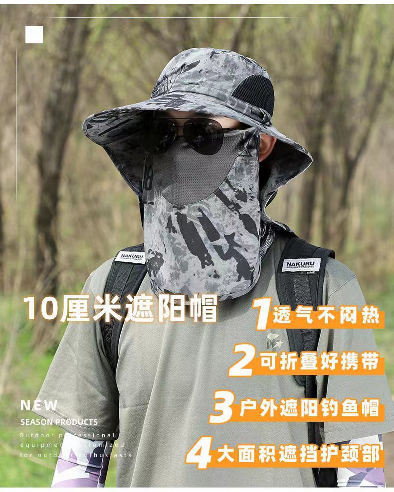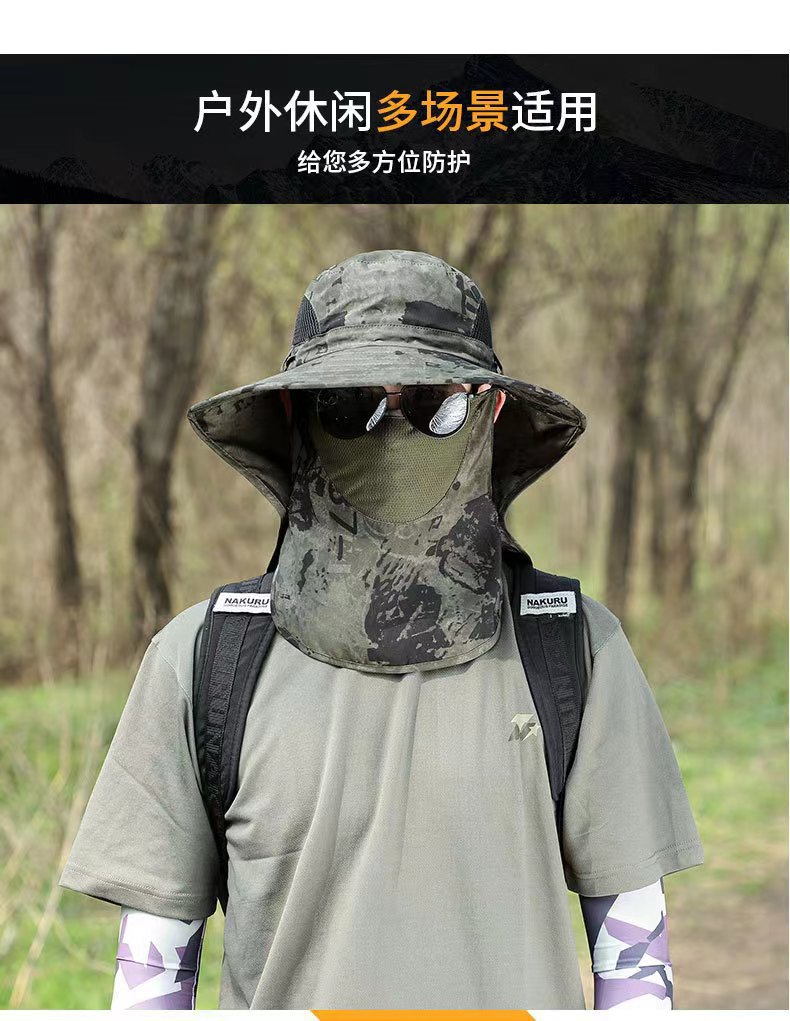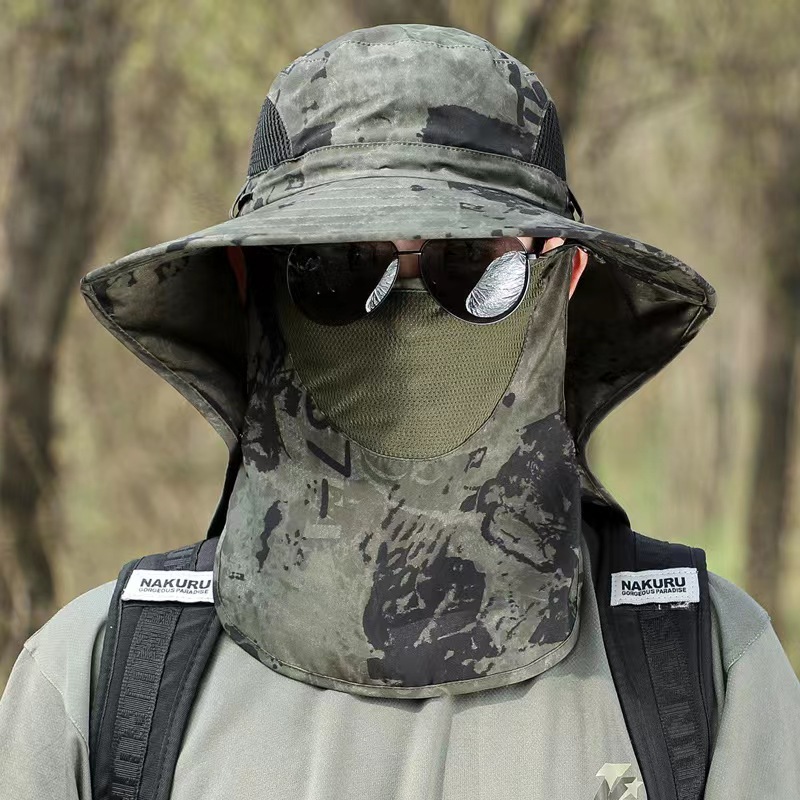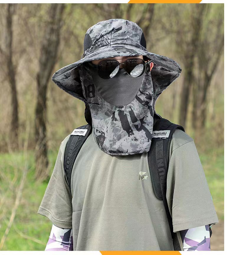 水墨迷彩帽子男士钓鱼帽披肩防晒遮阳帽防紫外户外登山专用帽子女