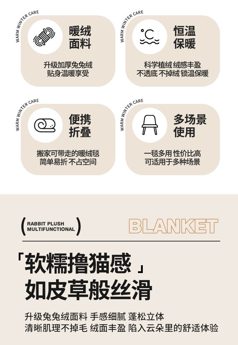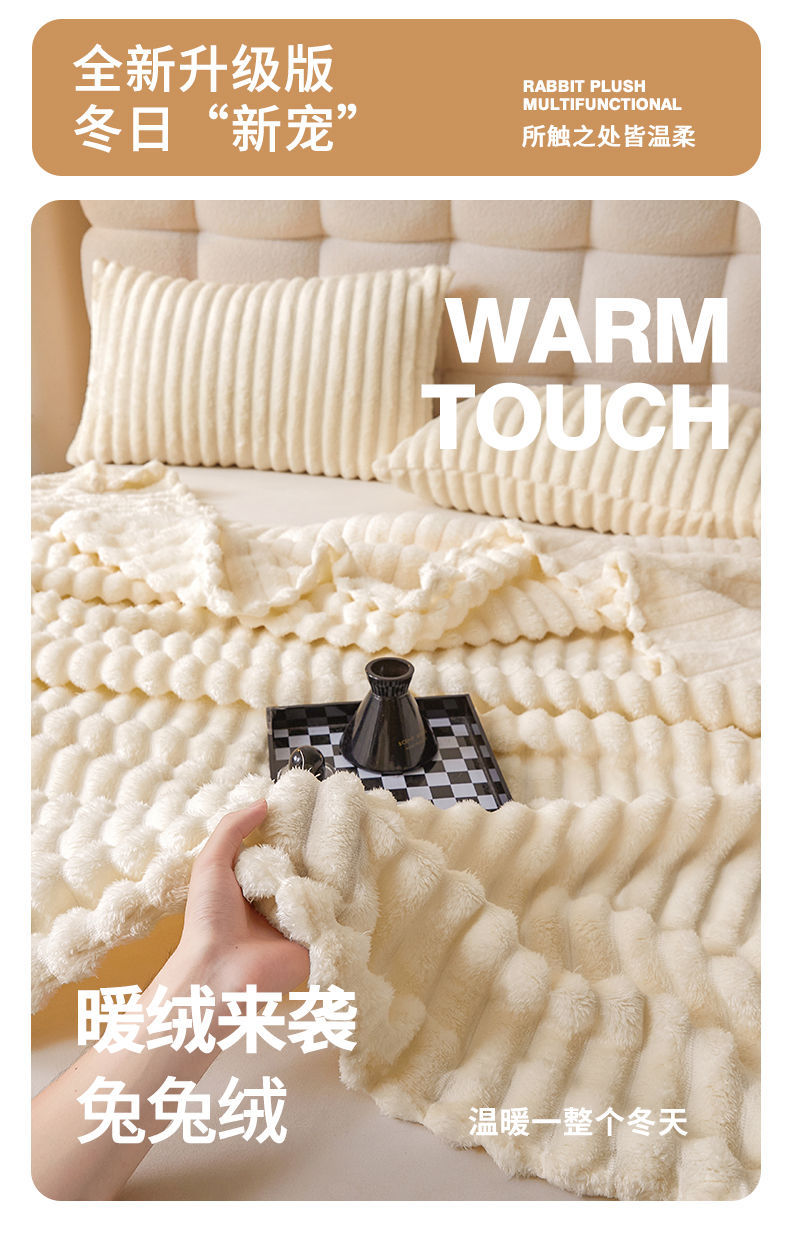 兔毛绒冬天保暖毯子加绒毛毯铺床午睡盖被珊瑚绒毯法兰绒加厚床单