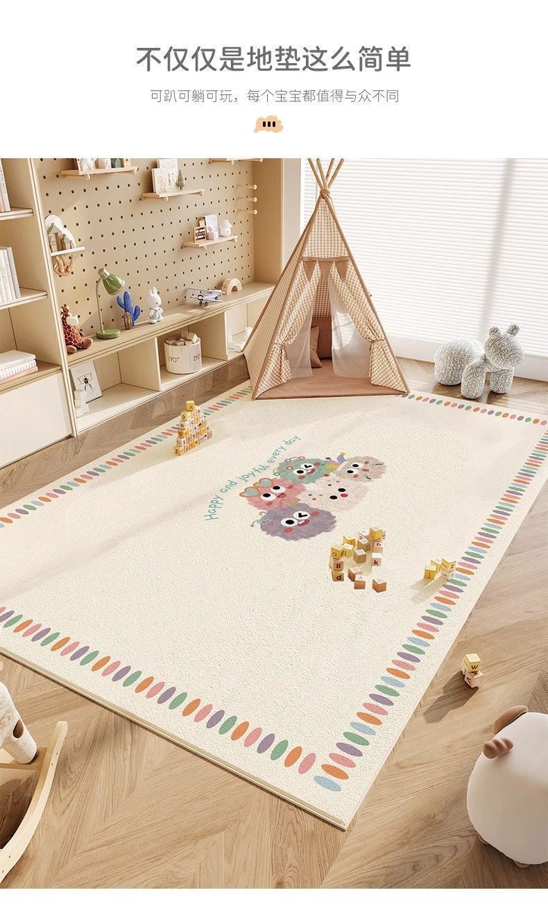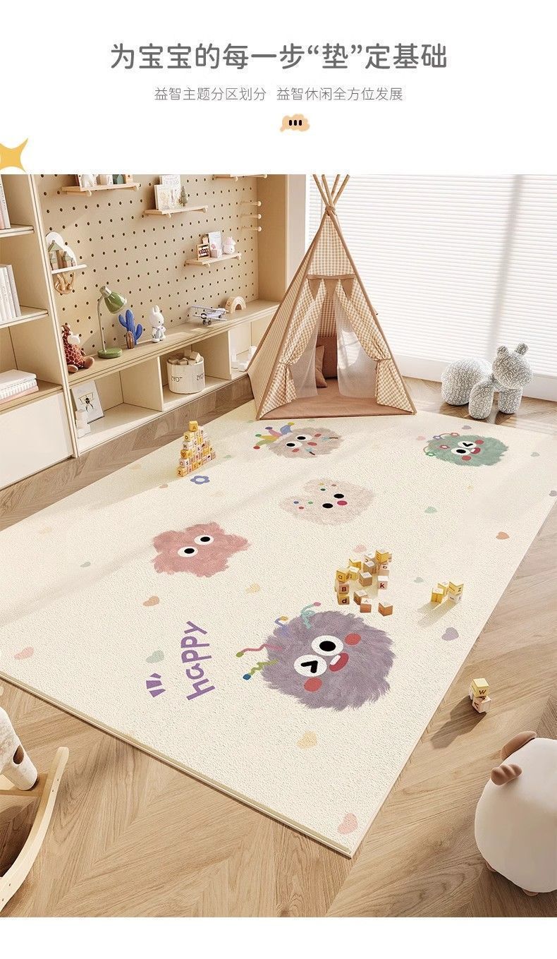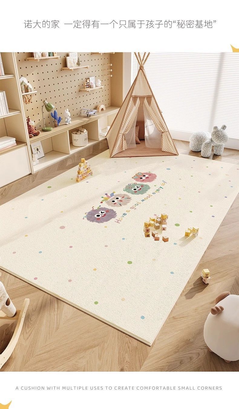 卡通彩色毛球地毯儿童房宝宝阅读区玩耍地垫卧室亲子互动萌趣家用