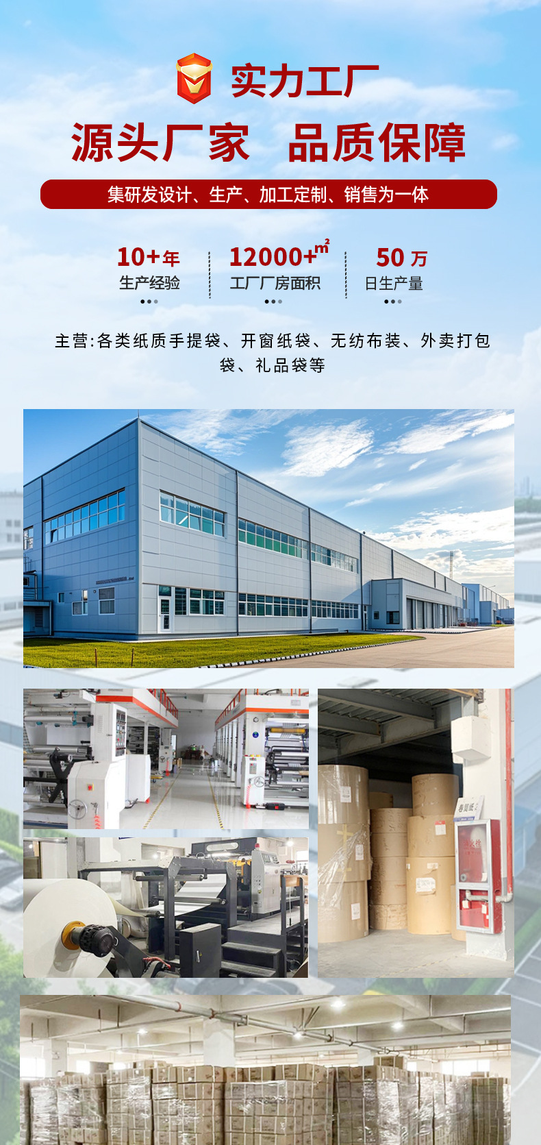 推荐理由:本公司专业生产纸袋,各种手提袋,拥有10万多平方米的厂房,全自动化机器人生产流水线,保证出货时效和产品质量,保证质量的同时提供实惠的价格和服务!欢迎合作